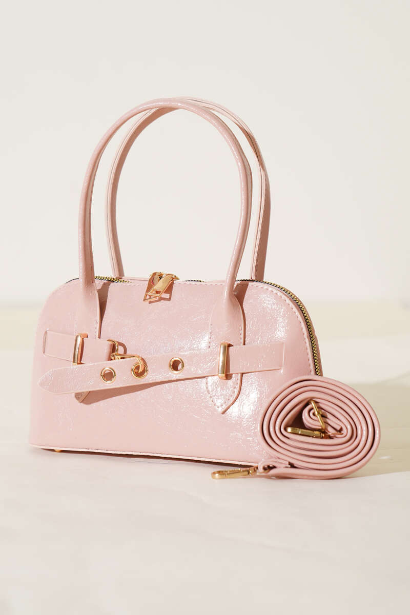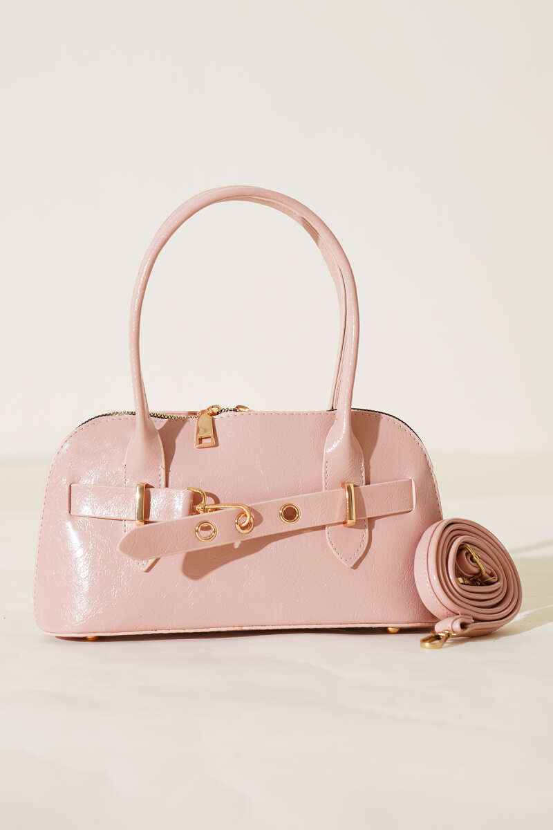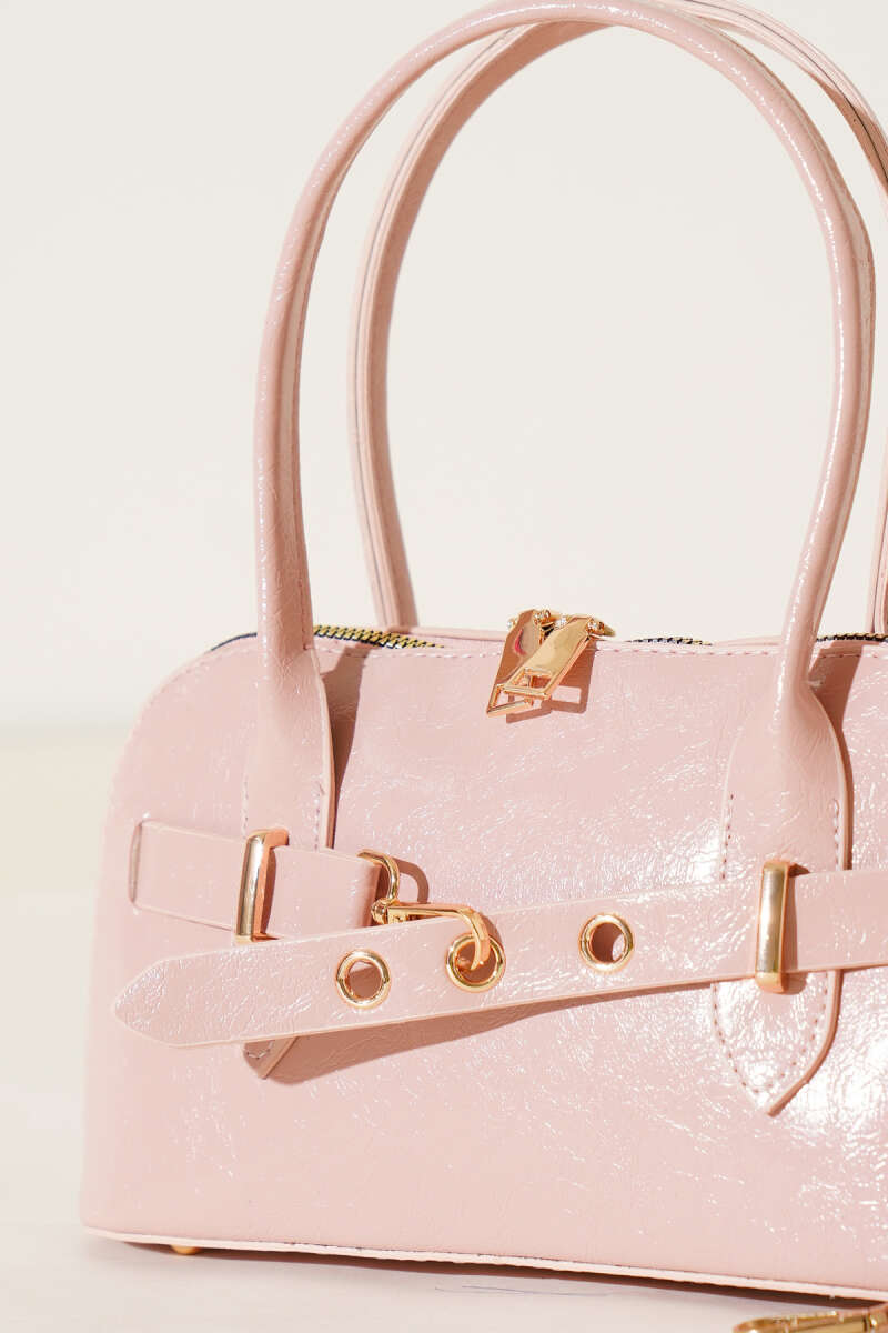 Kanca Detaylı Fermuarlı Rugan Çanta Pudra