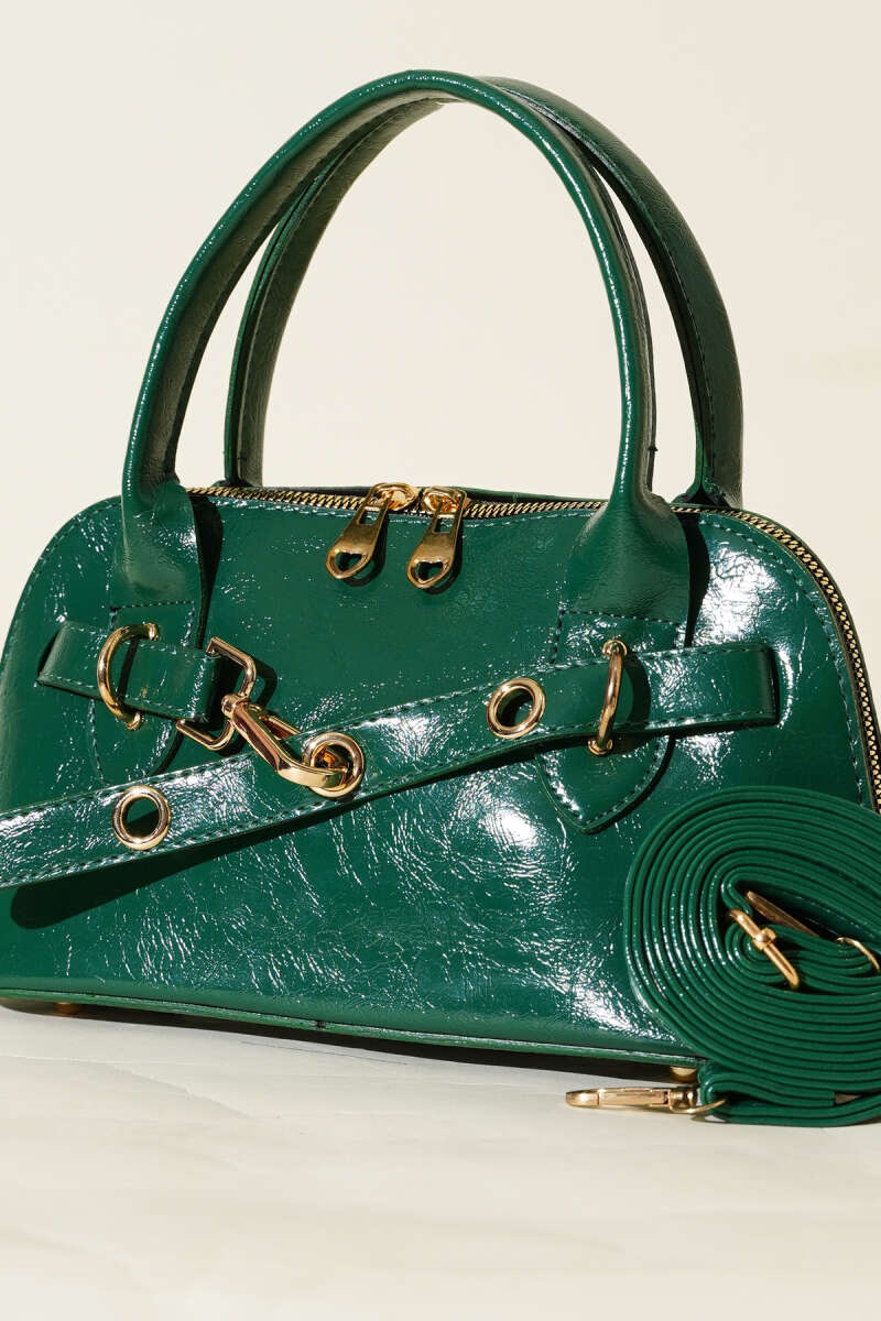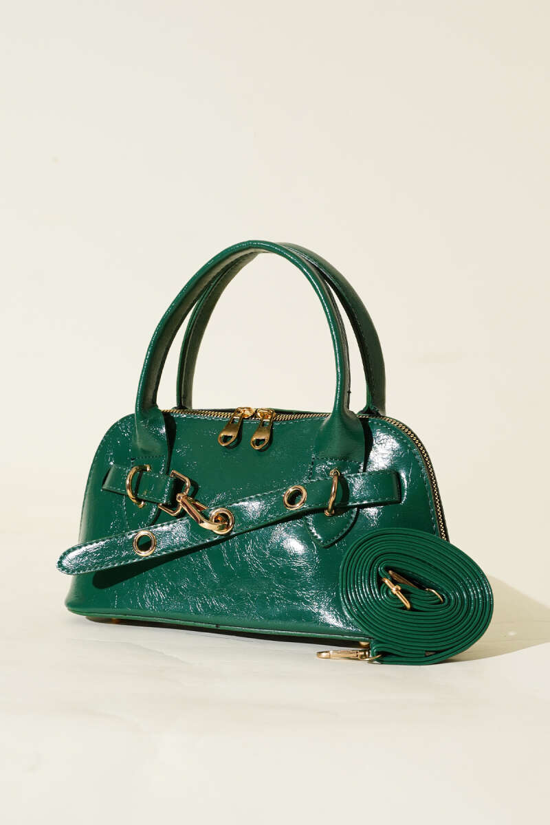 Kanca Detaylı Fermuarlı Rugan Çanta Zümrüt