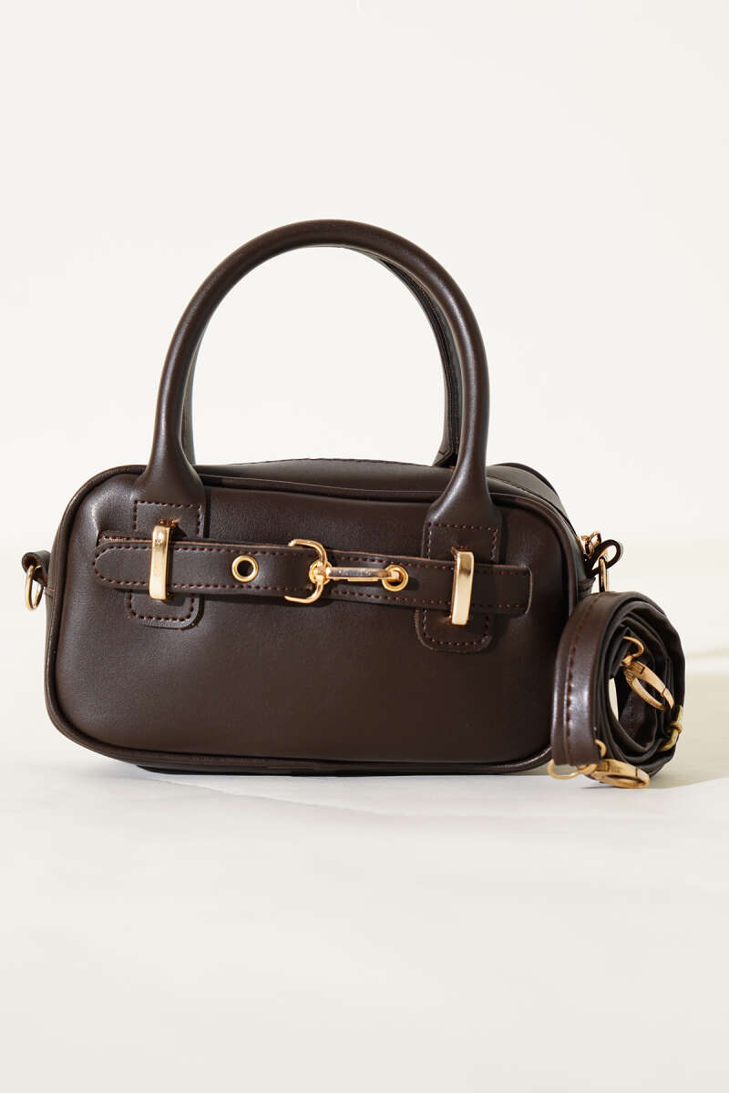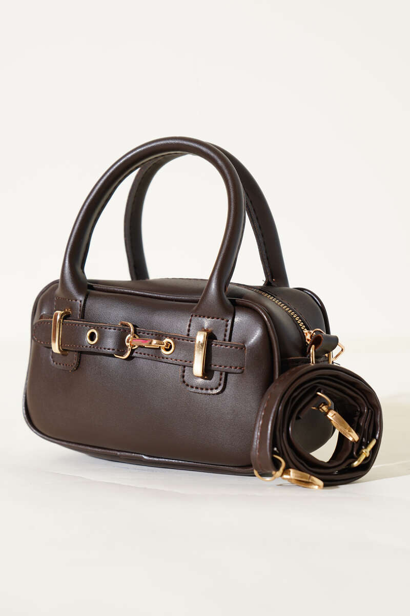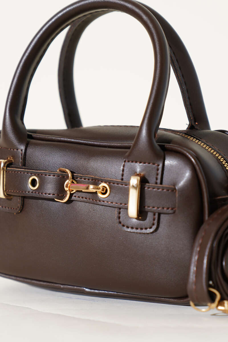Kanca Detaylı Fermuarlı Rugan Çanta Bordo