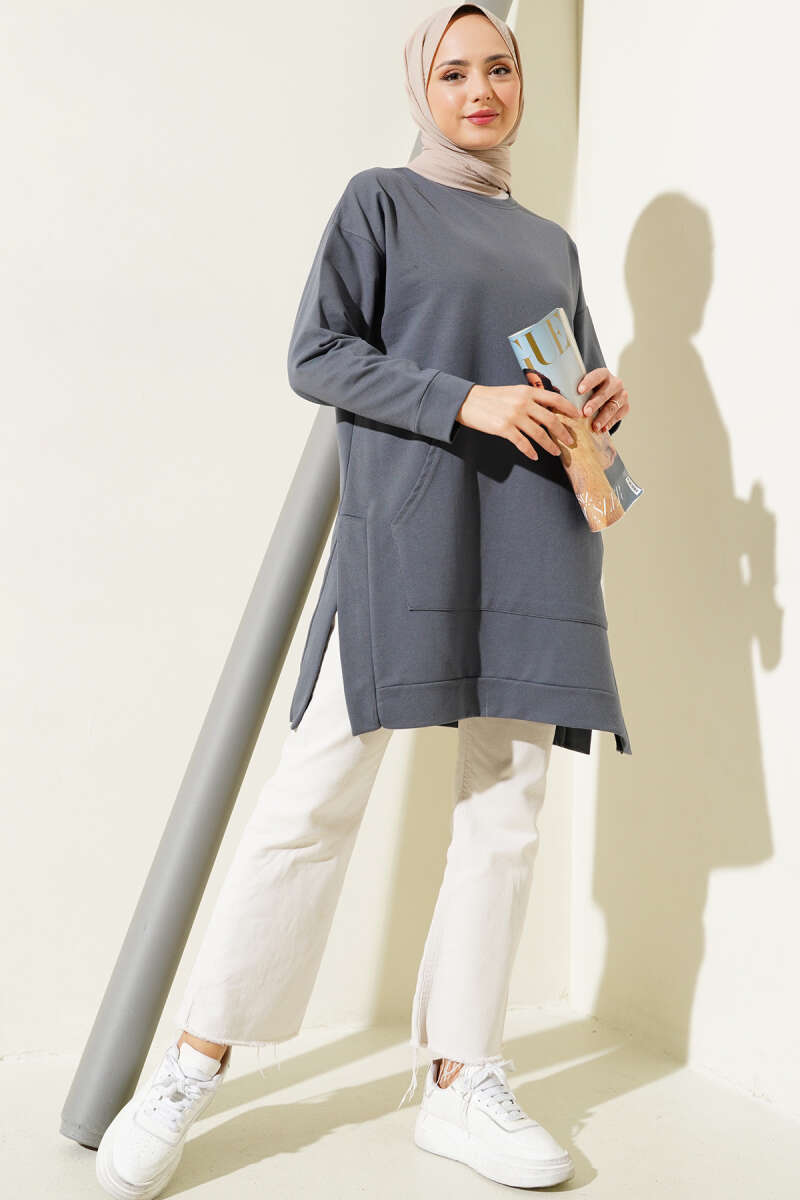 Yırtmaçlı Bisiklet Yaka Füme Tişört