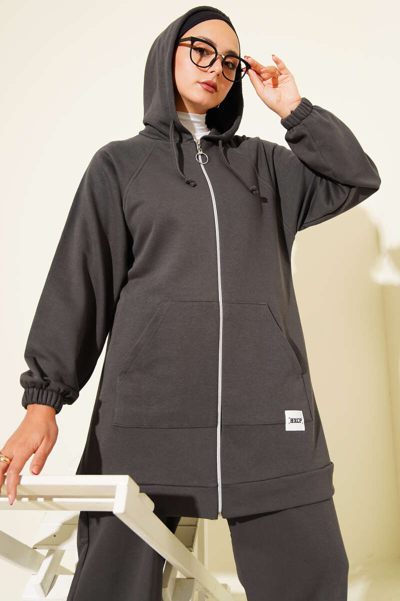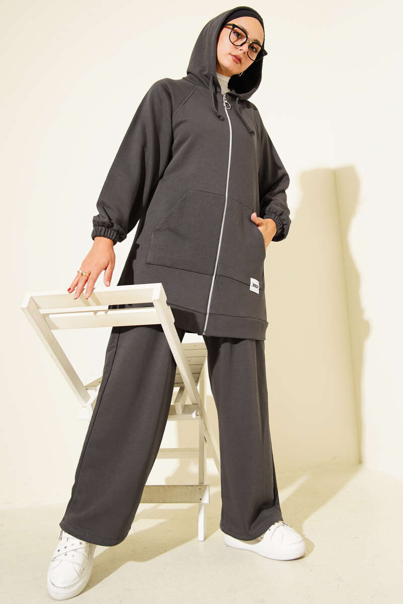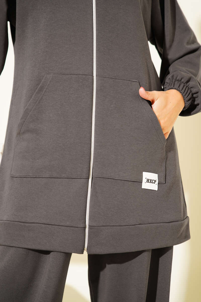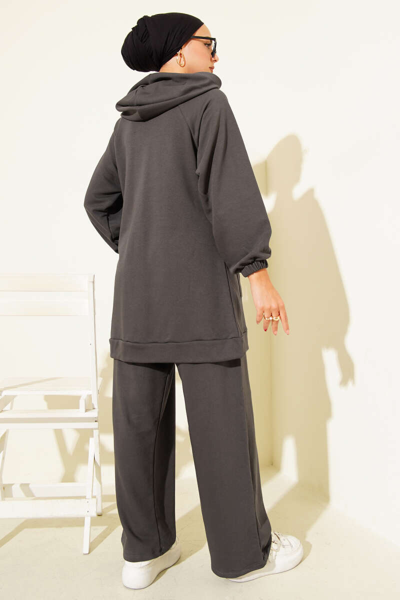 Kanguru Cepli Kapüşonlu İkili Takım Füme