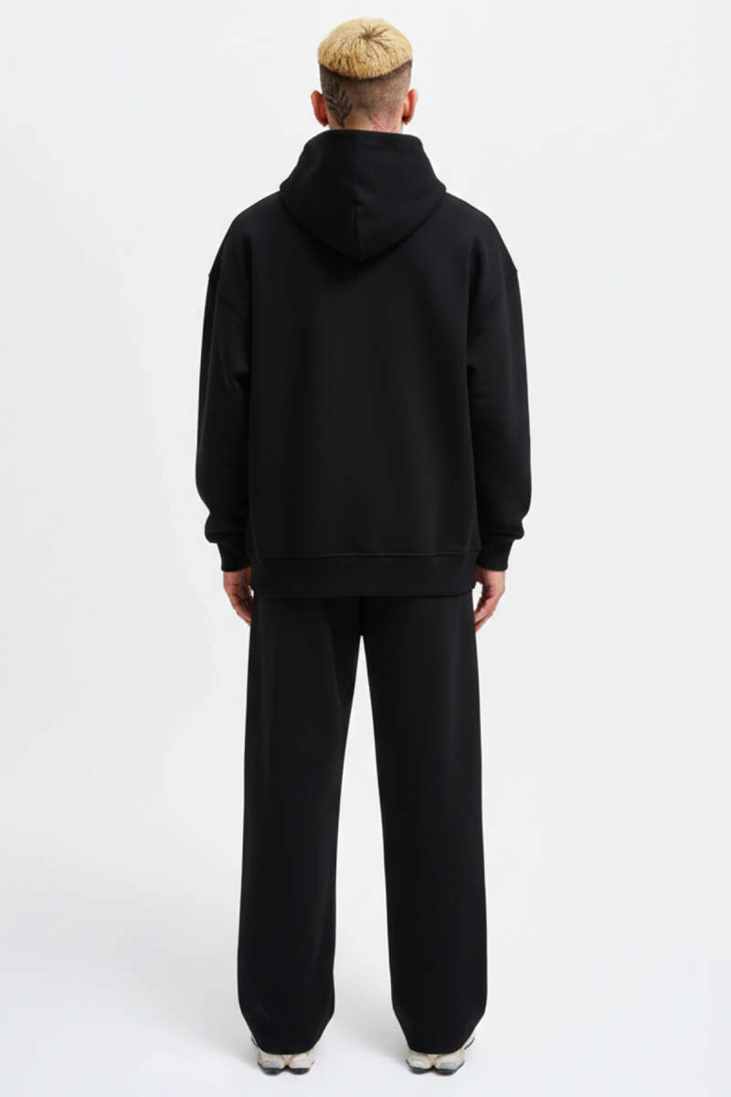 Blok Renkli Selanik Erkek Sweatshirt Siyah