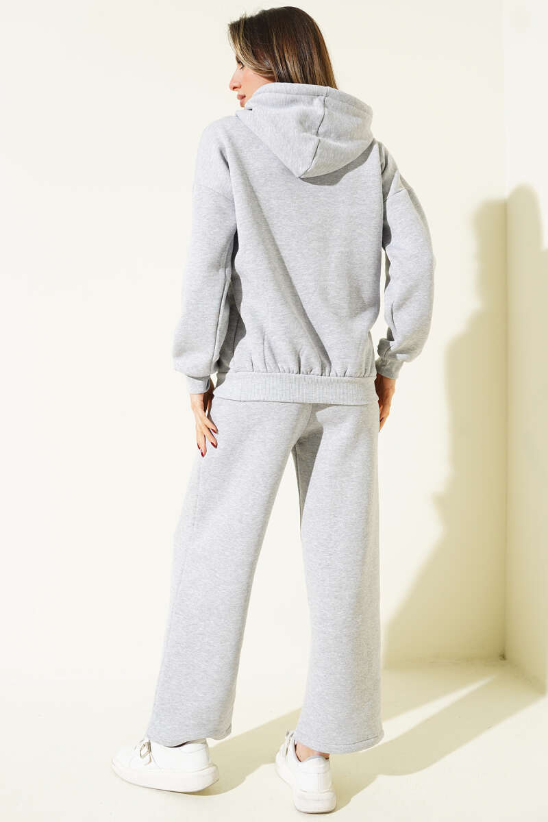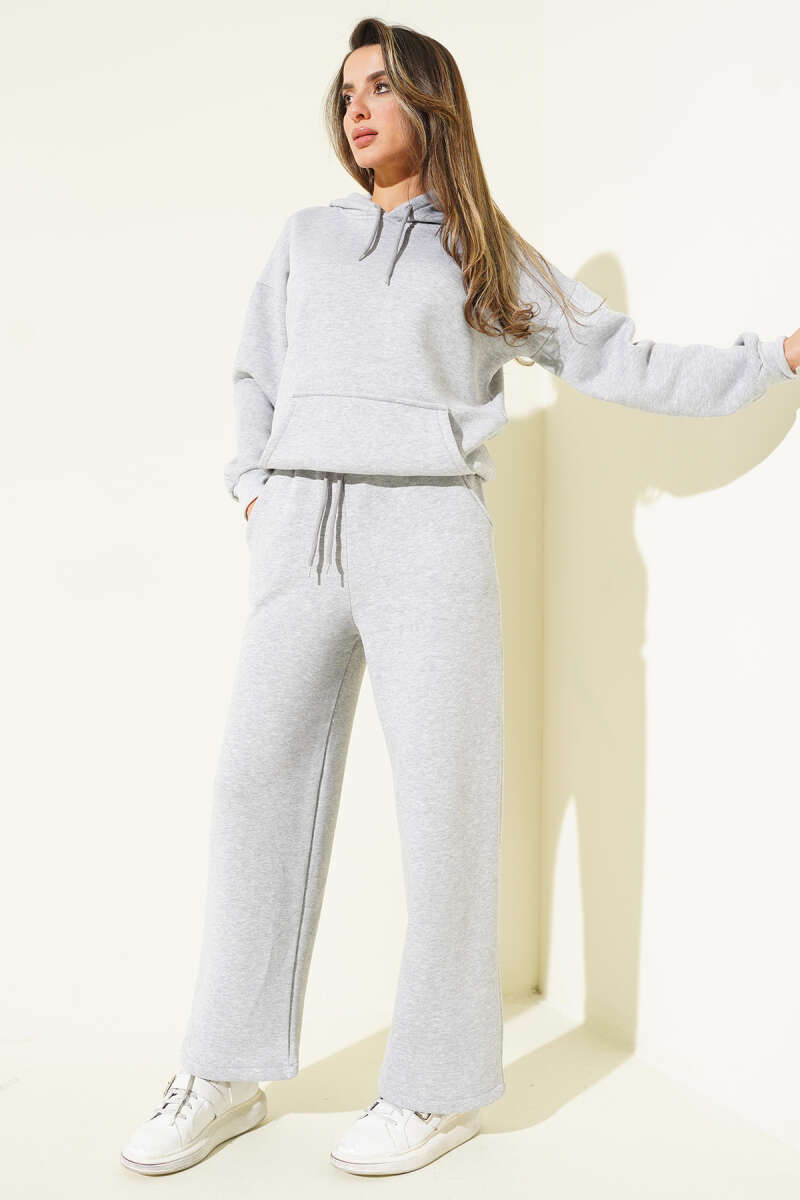 Kanguru Cepli Üç İplik Sweatshirt İkili Takım Kahve