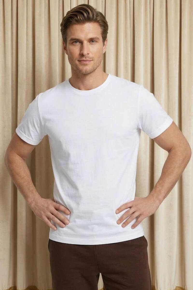 Kapalı Yaka Basic Erkek T-shirt Beyaz