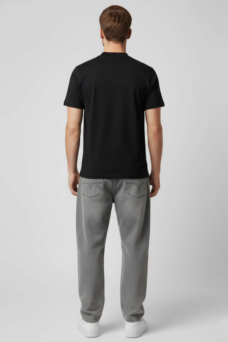Kapalı Yaka Basic Erkek T-shirt Siyah
