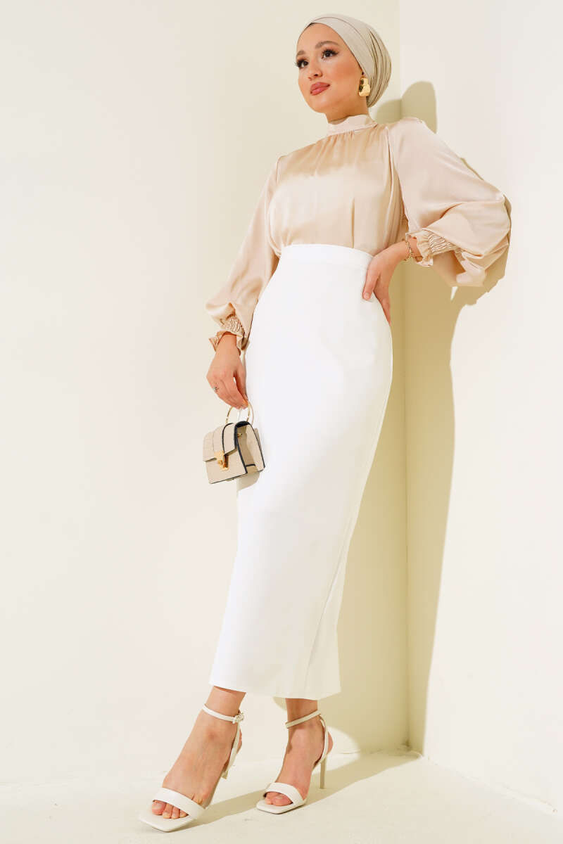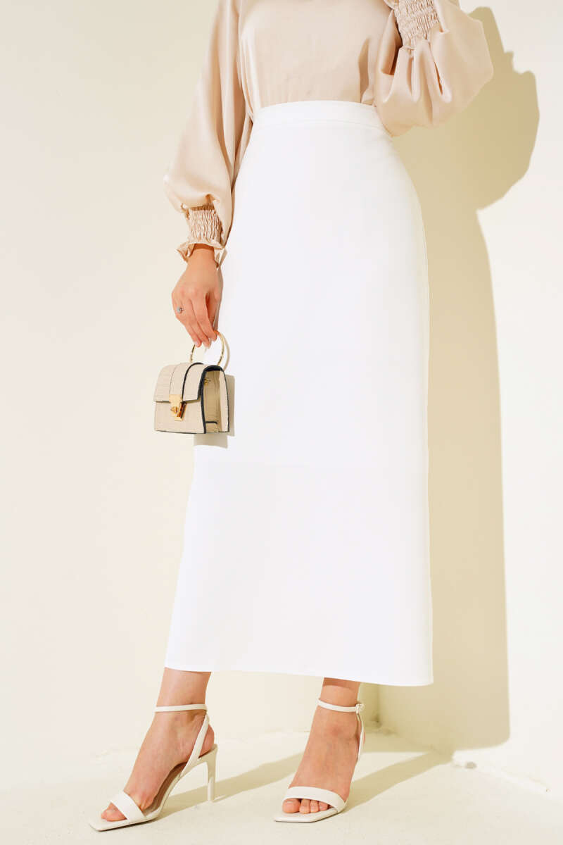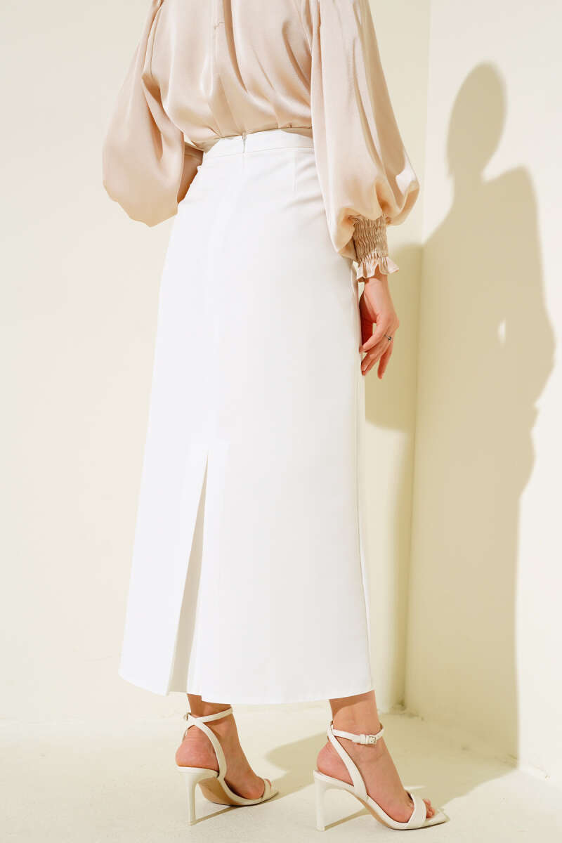 Kemer Aksesuarlı Ekoseli Etek Haki