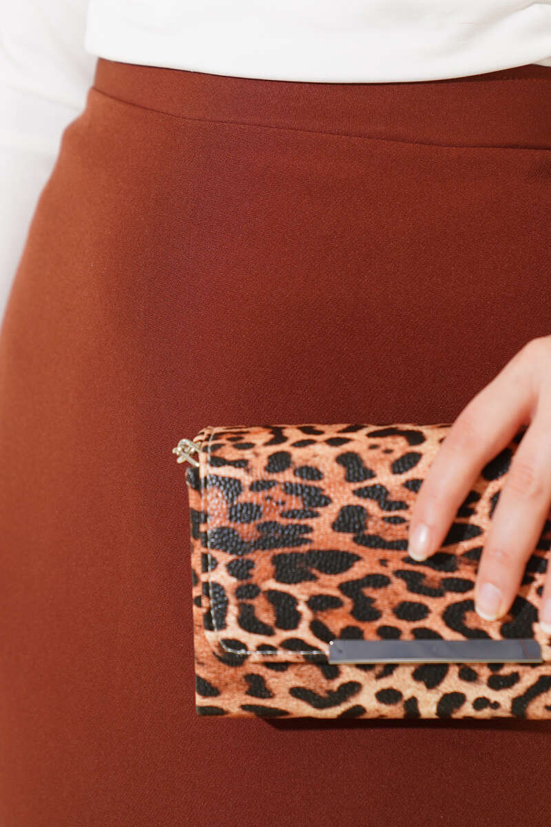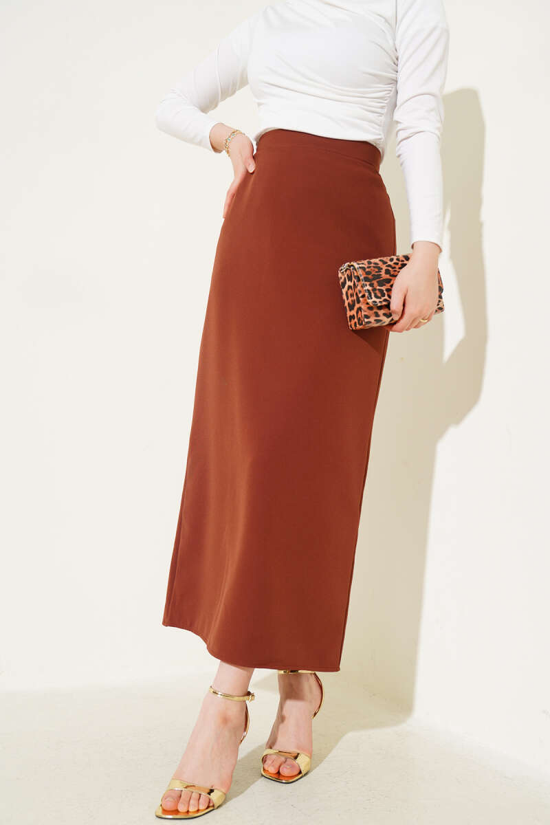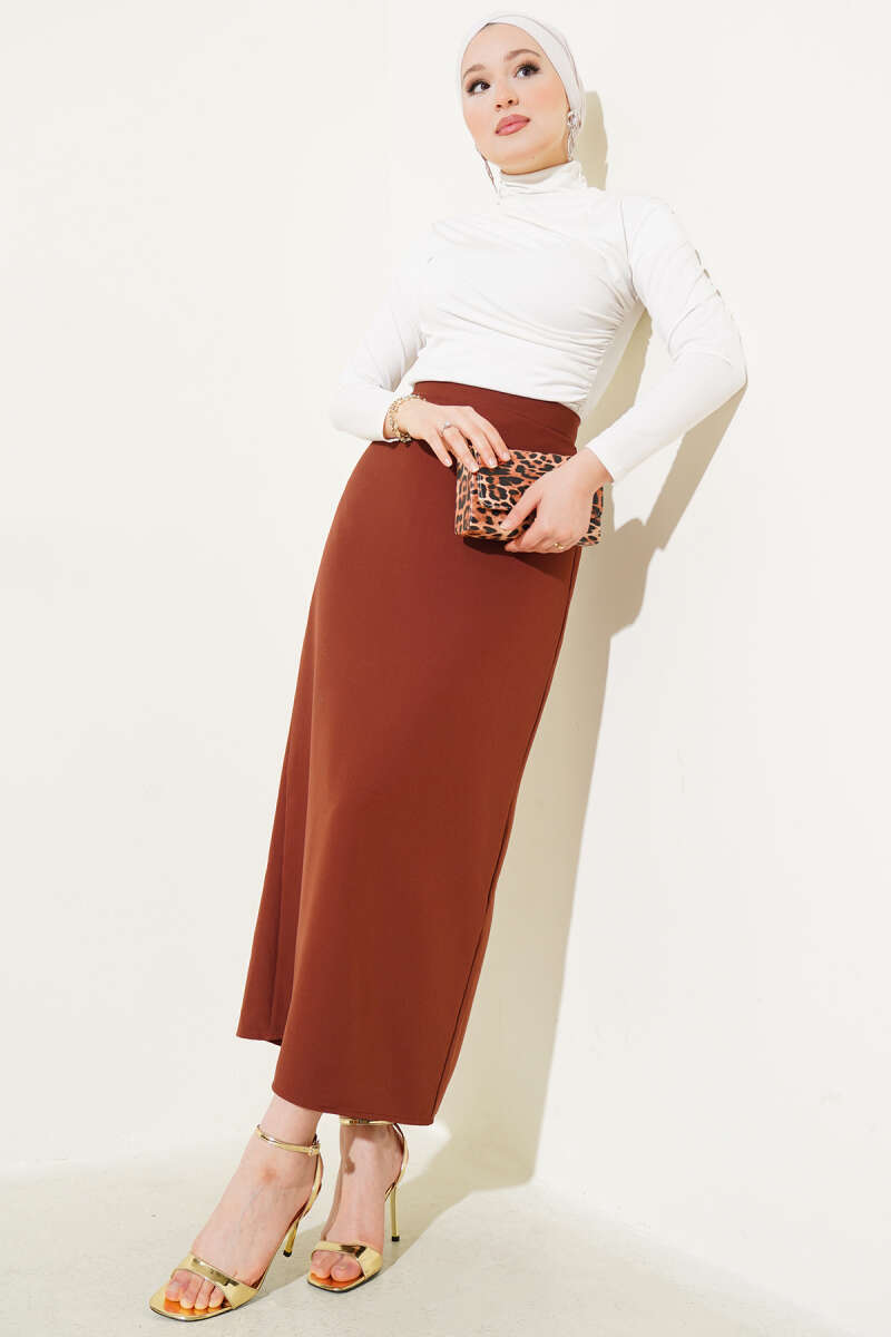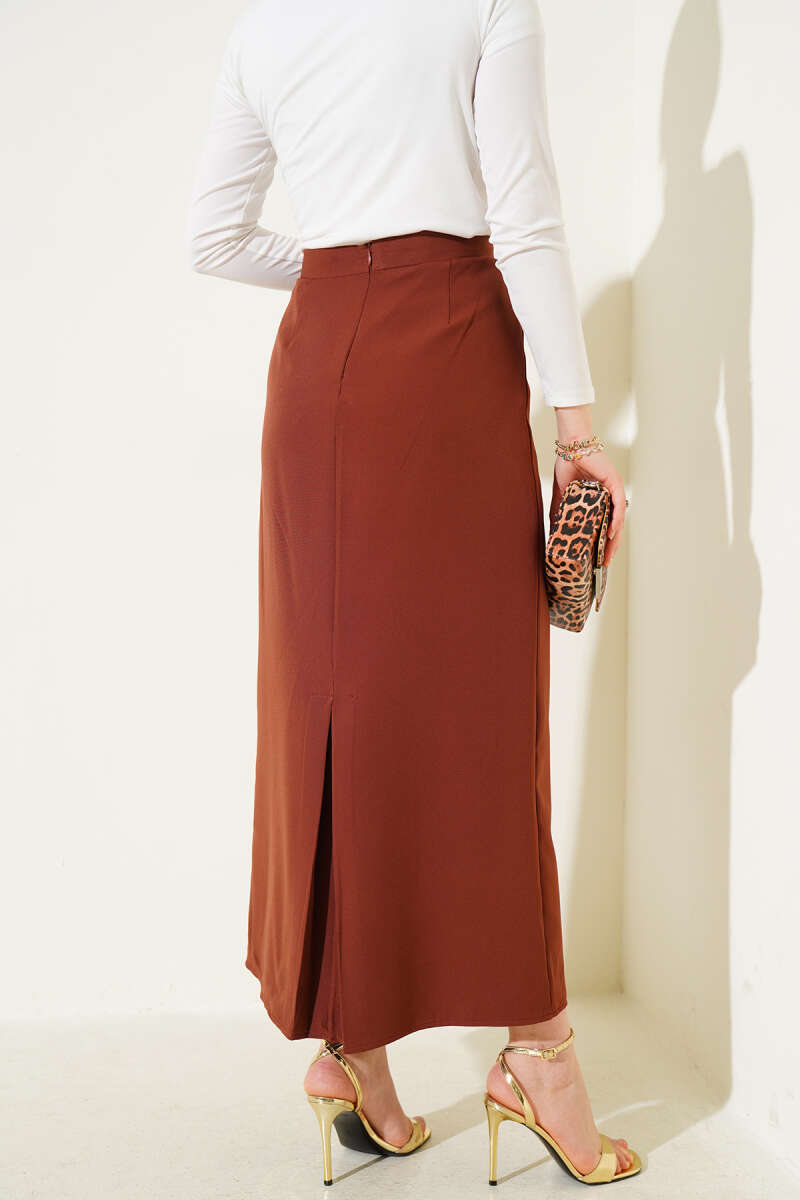 Loyşa Bel Lastikli Kemerli Etek Kahve