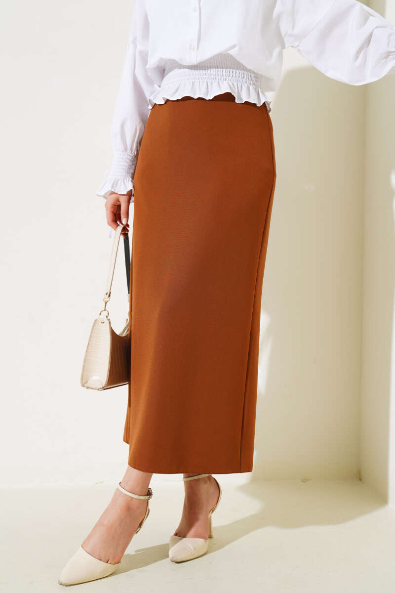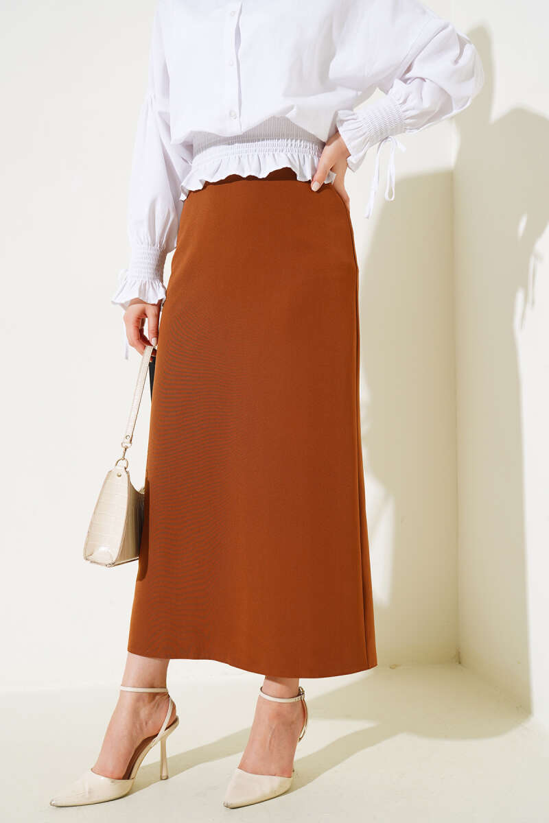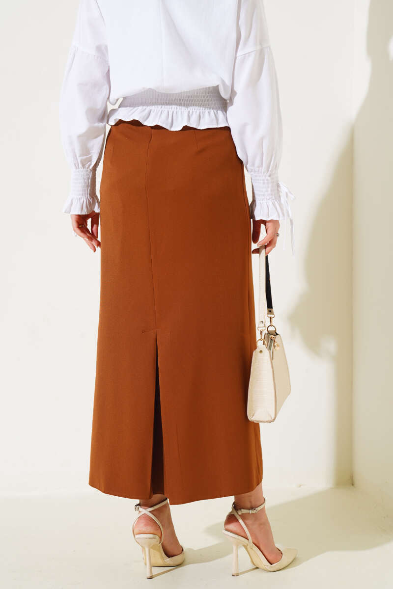 Loyşa Bel Lastikli Kemerli Etek Kahve
