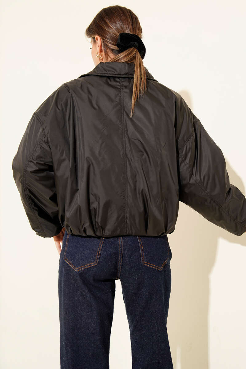 Gold Düğmeli Şeritli Triko Hırka Siyah