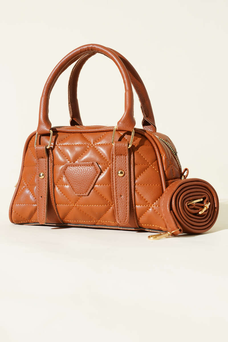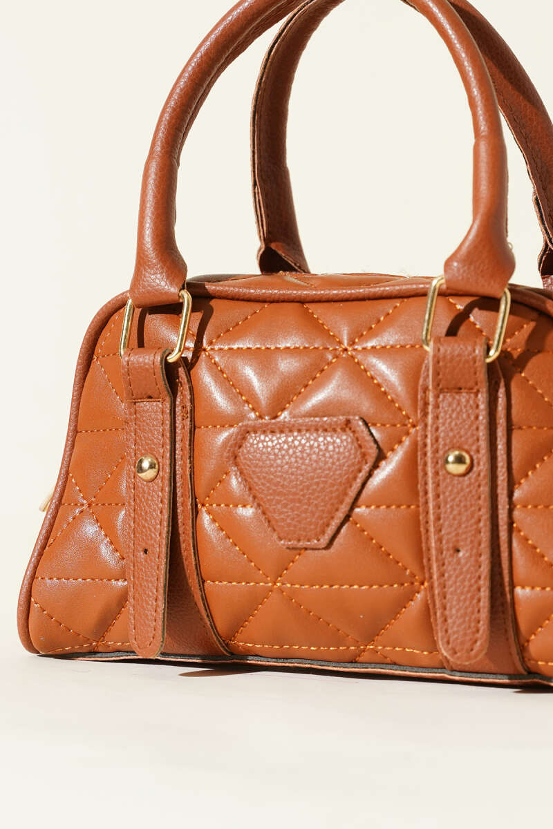 Kapitone Detay Fermuarlı Çanta Acı Kahve