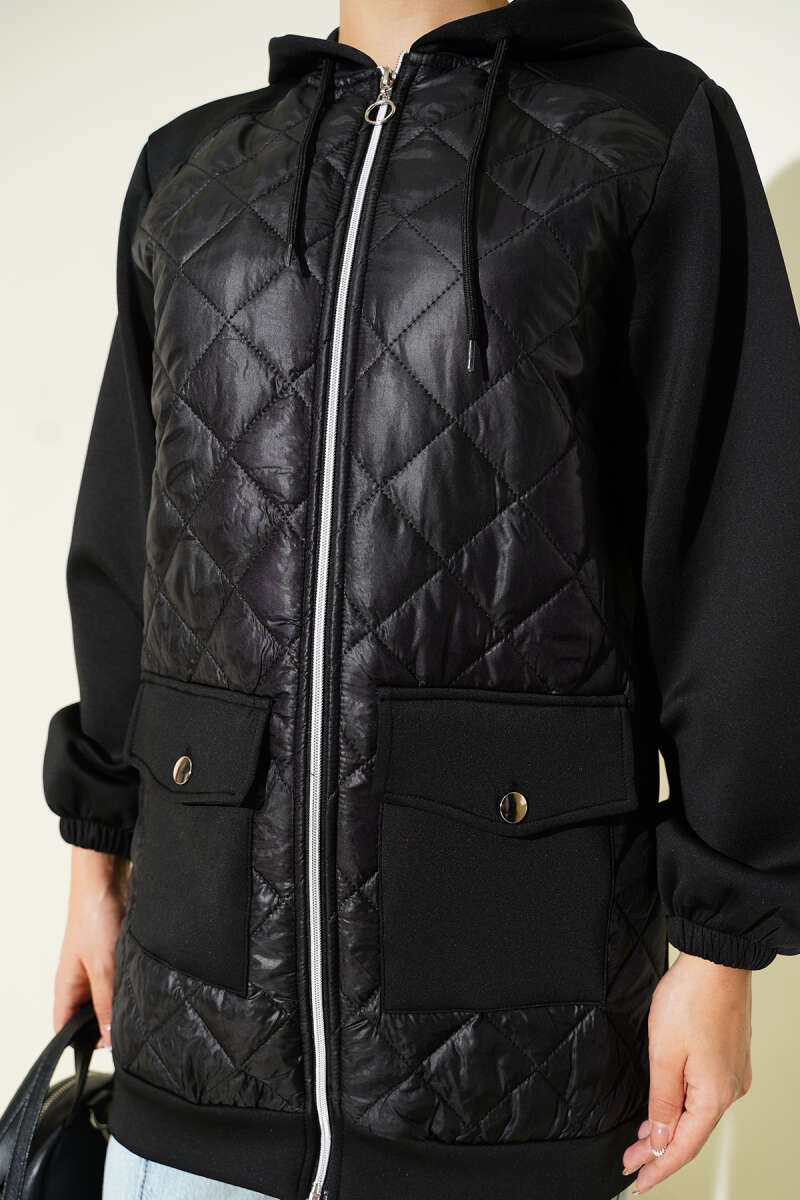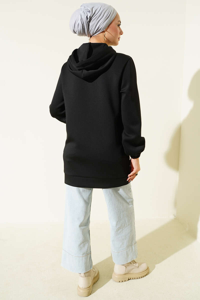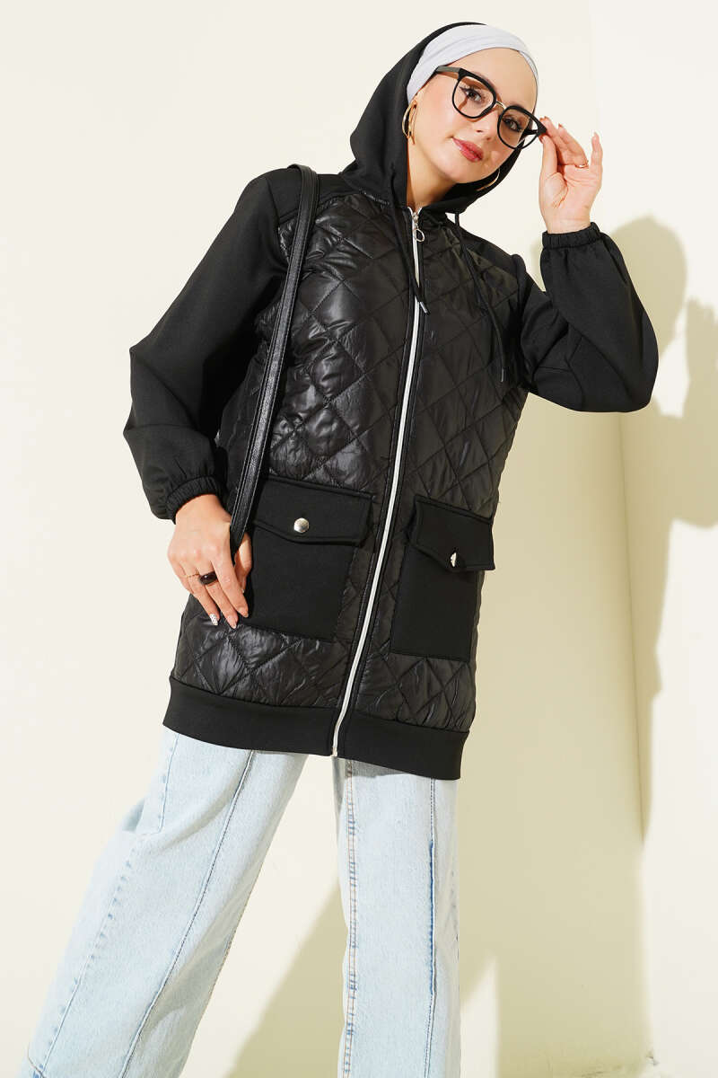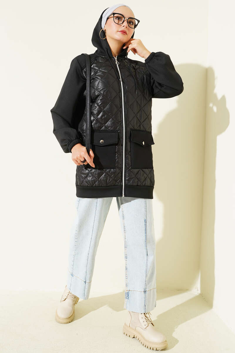Kuşaklı Kapüşonlu Kaşe Kaban Siyah