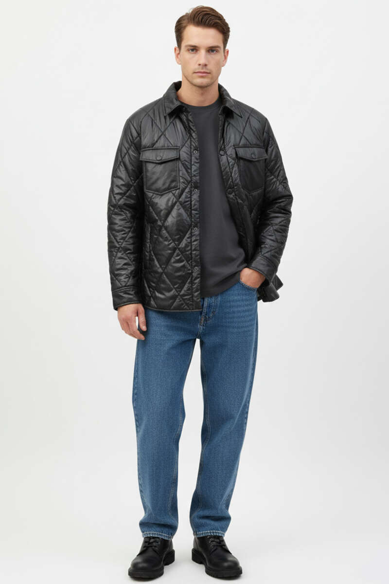 Çift Cep Detaylı Fermuarlı Erkek Mont Siyah