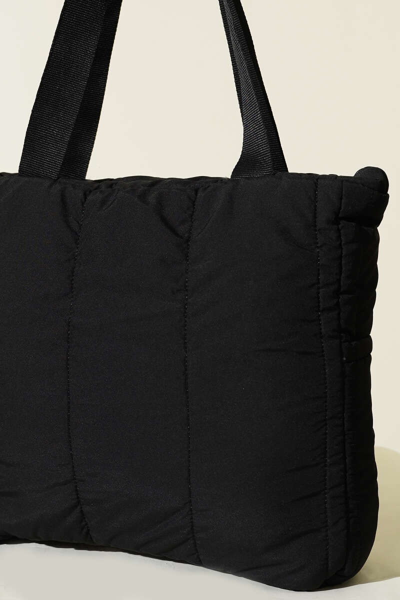Kapitone Puffer El ve Omuz Çantası Siyah
