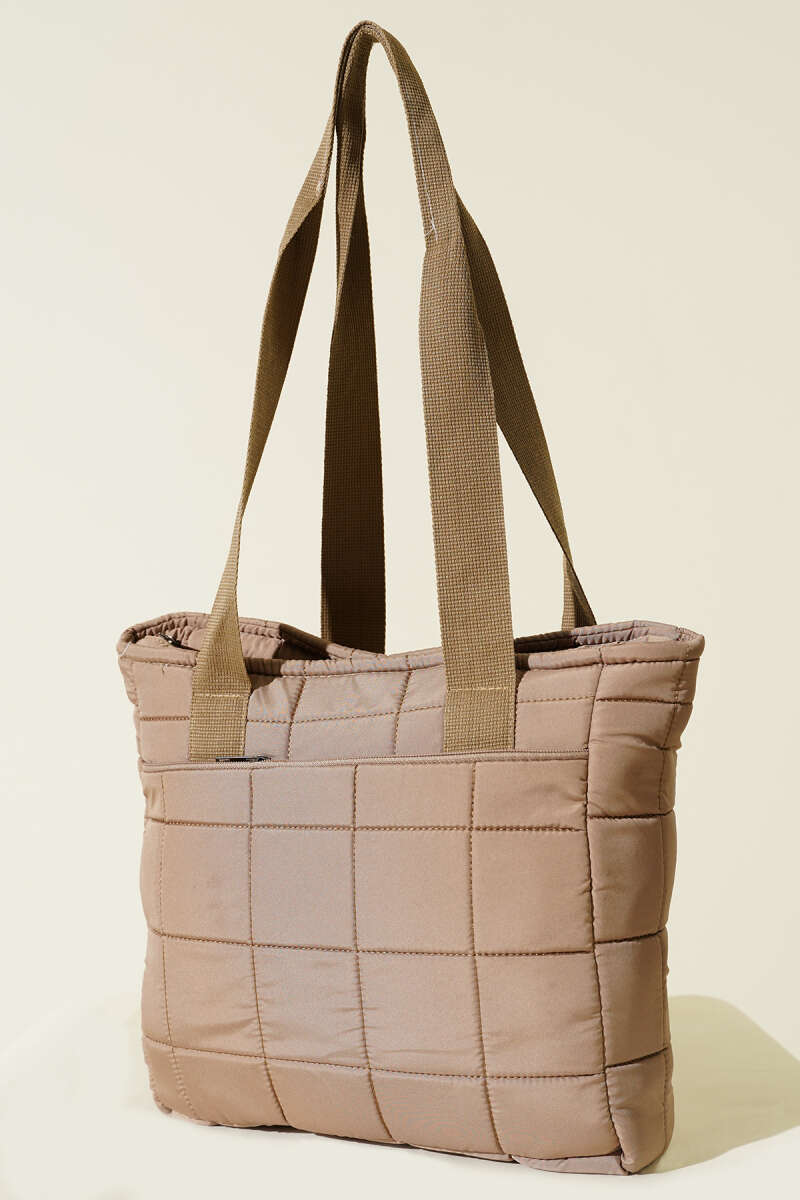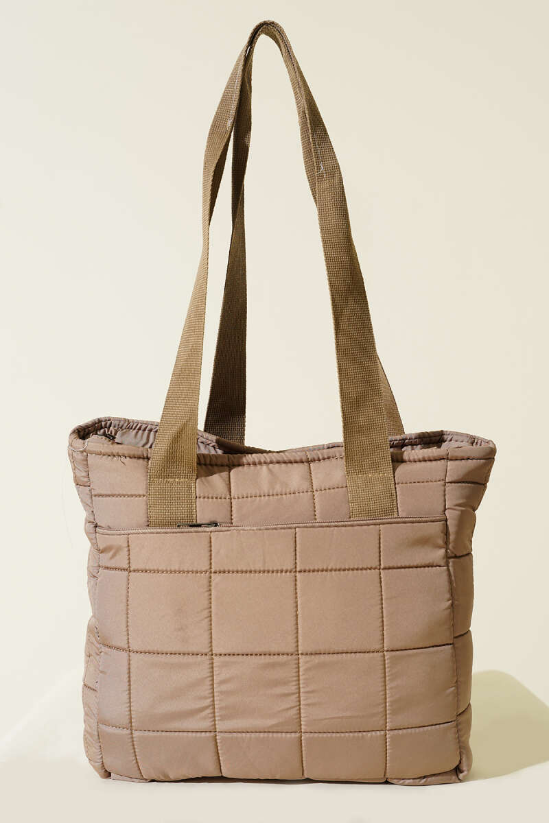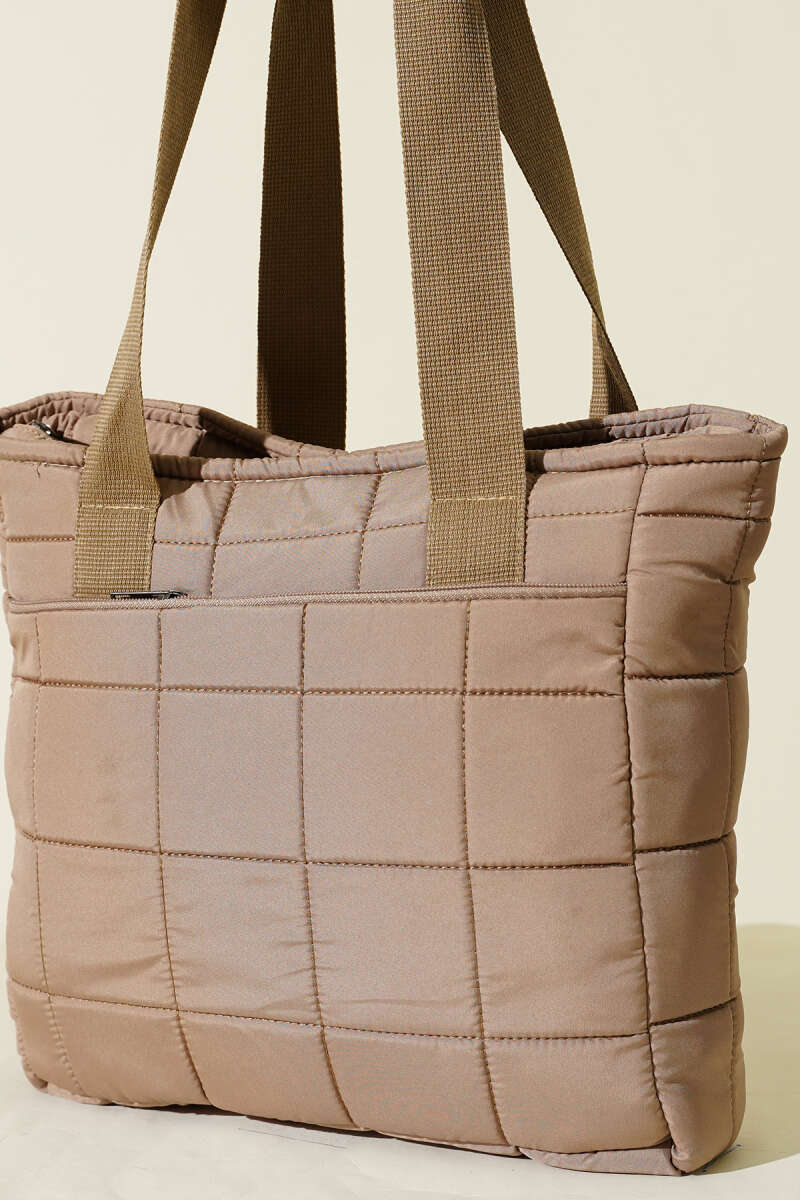 Çok Bölmeli Kapitone Omuz Çantası Vizon