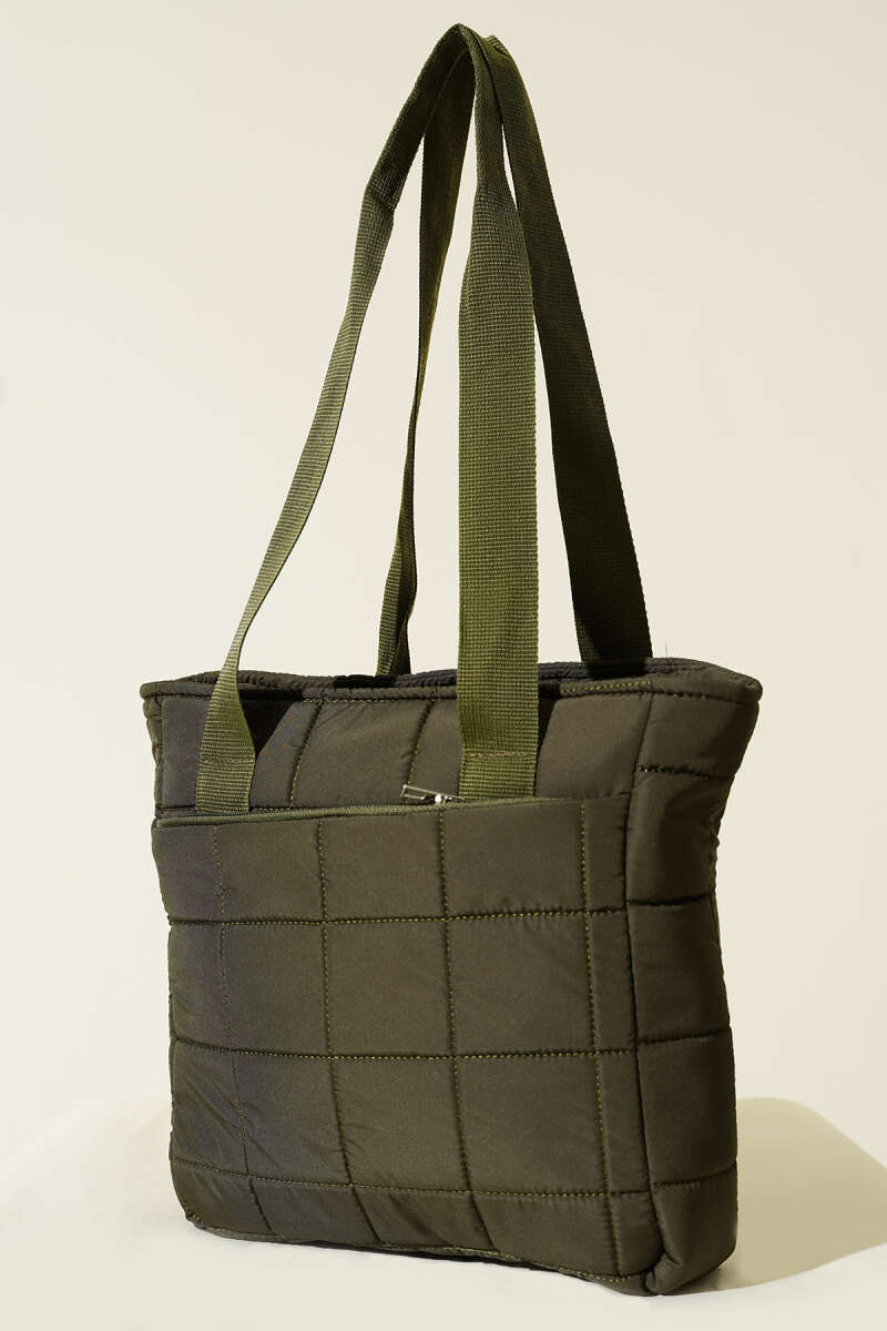 Çok Bölmeli Kapitone Omuz Çantası Vizon