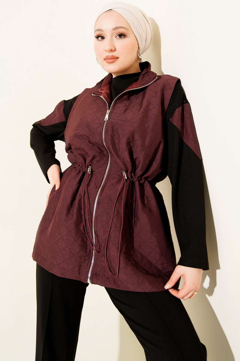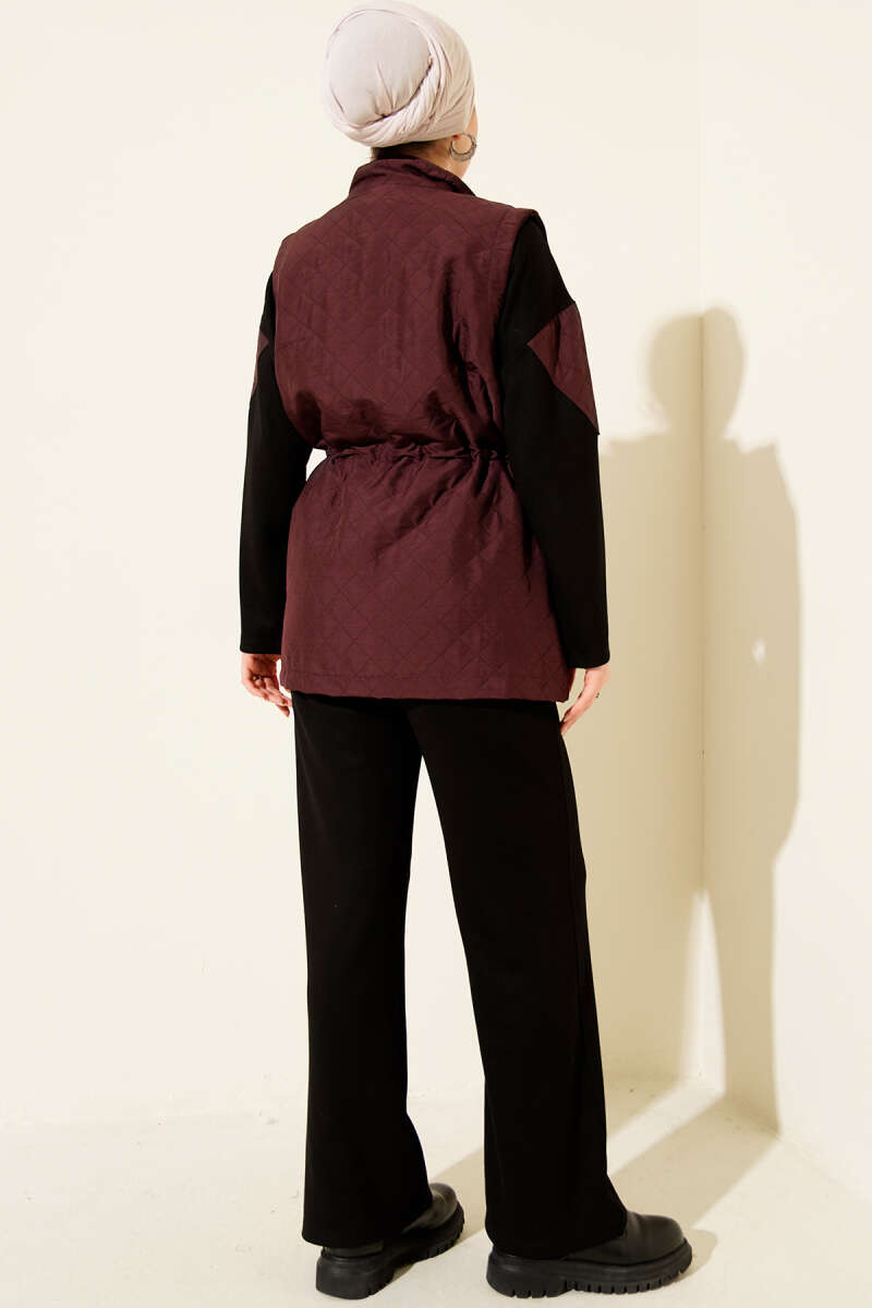 Kapitone Yelekli Fermuarlı Üçlü Takım Siyah