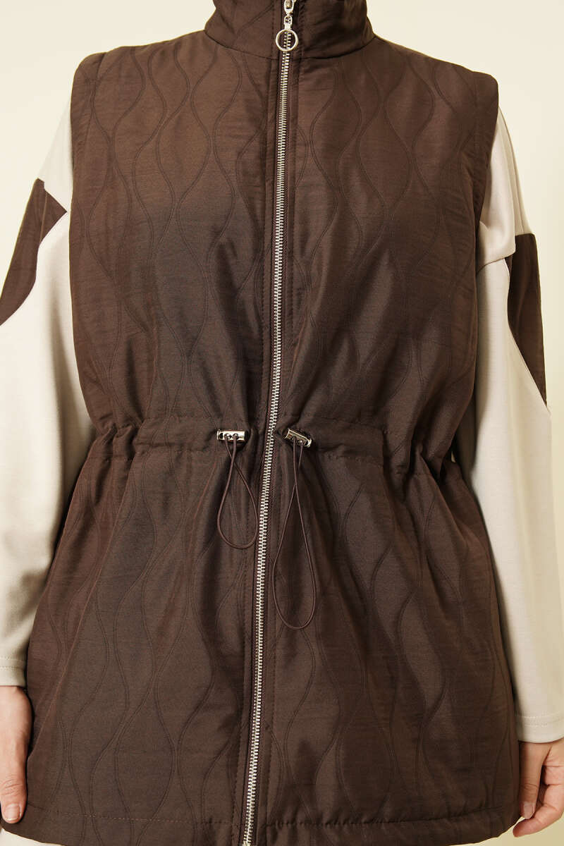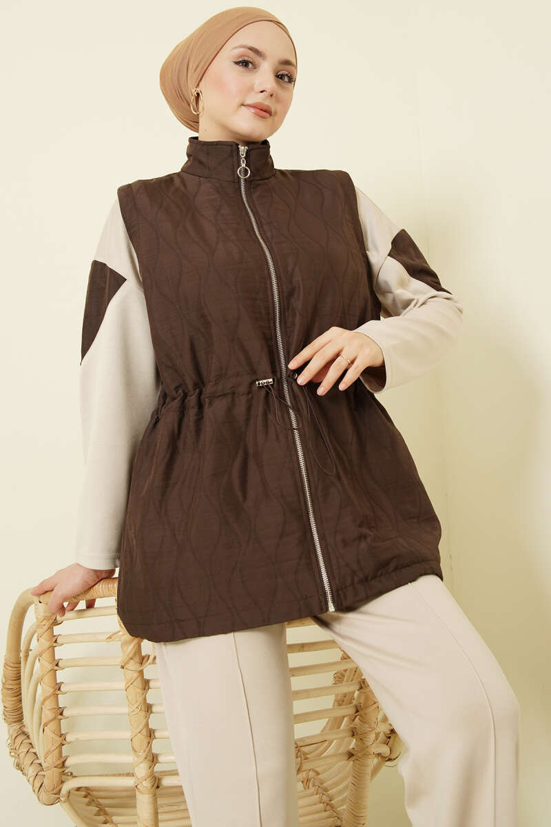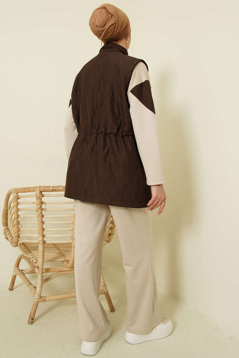 Kapitone Yelekli Fermuarlı Üçlü Takım Kahve