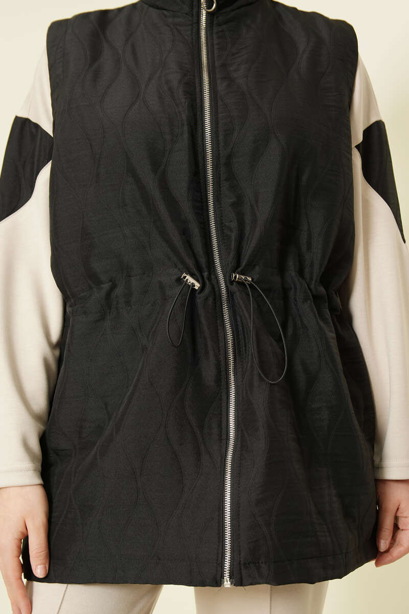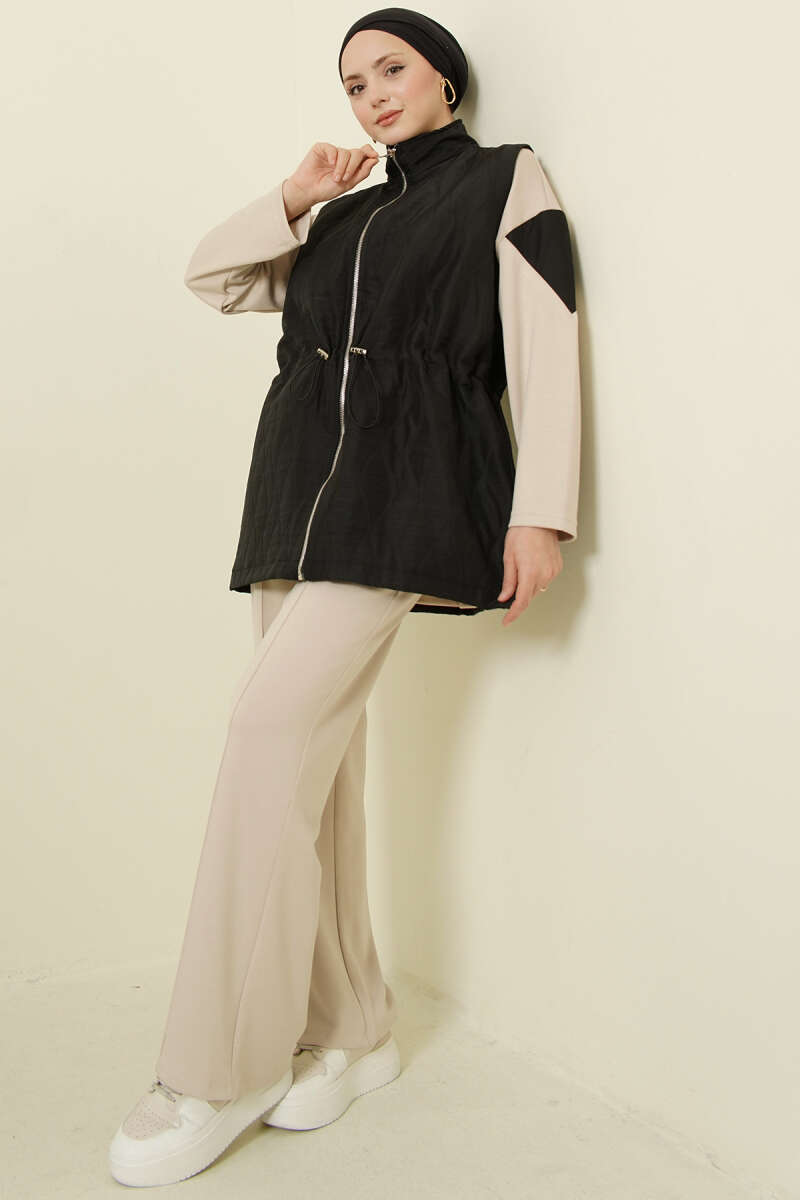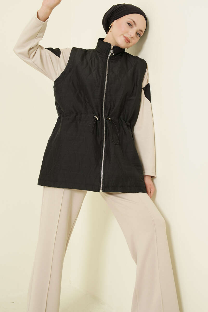 Kapitone Yelekli Fermuarlı Üçlü Takım Siyah