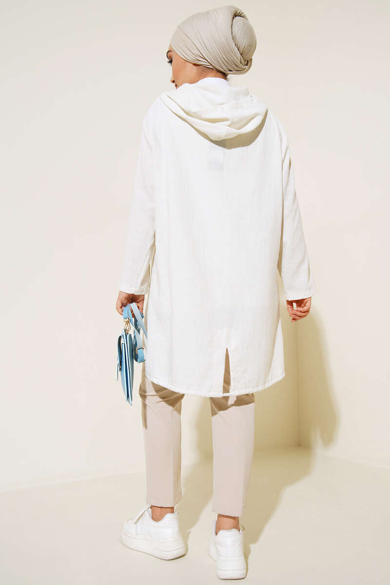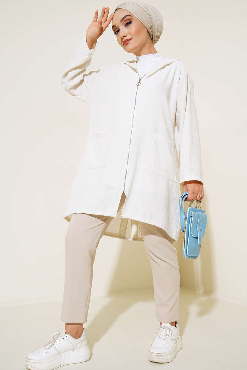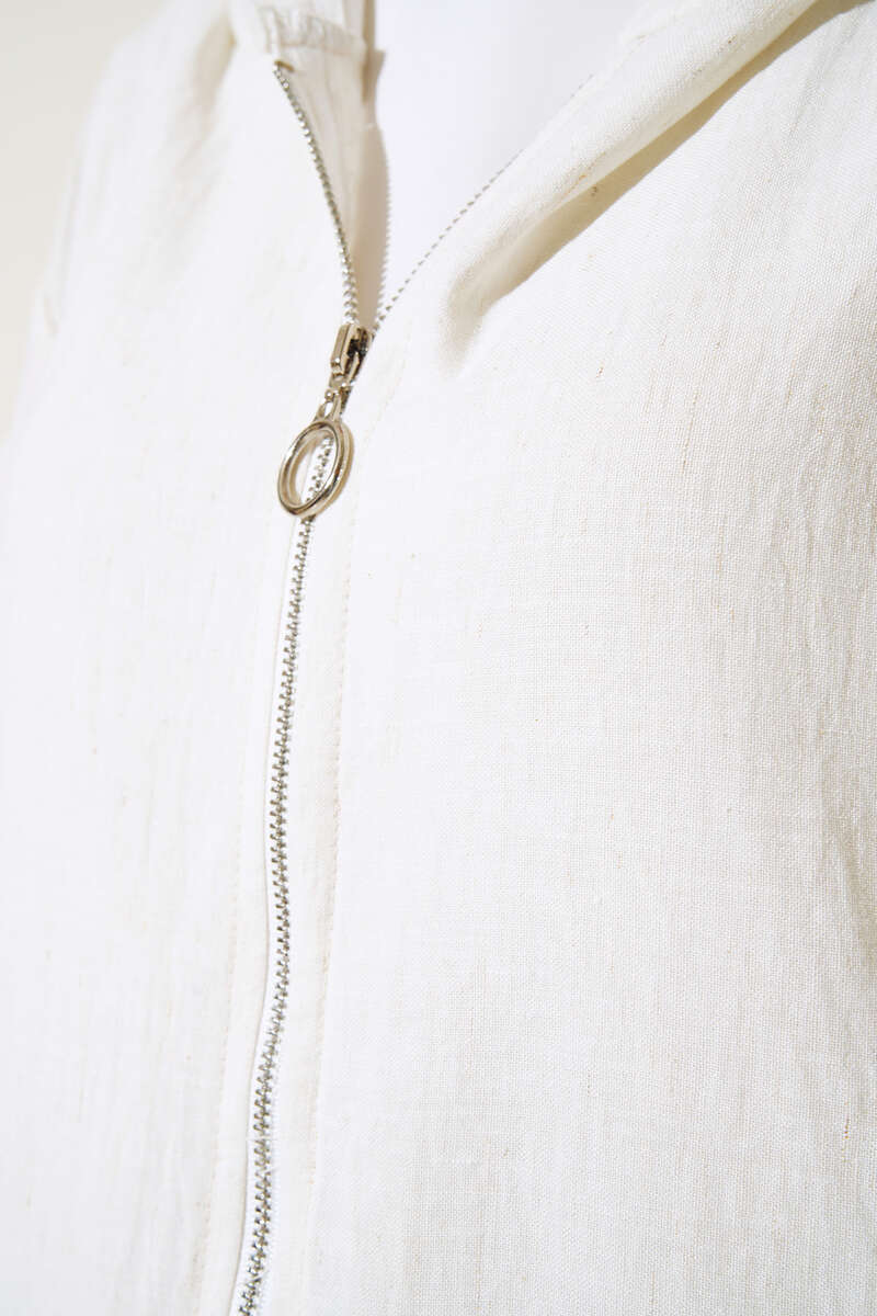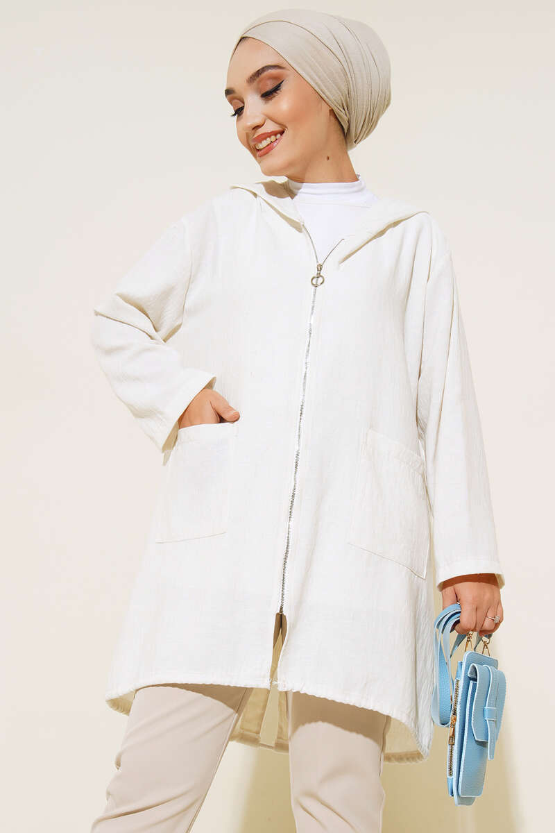 Kapüşonlu Fermuarlı Buklet Kap Bej