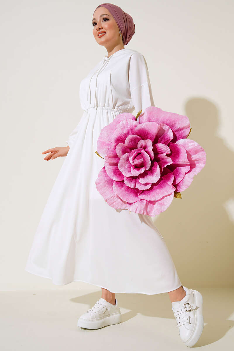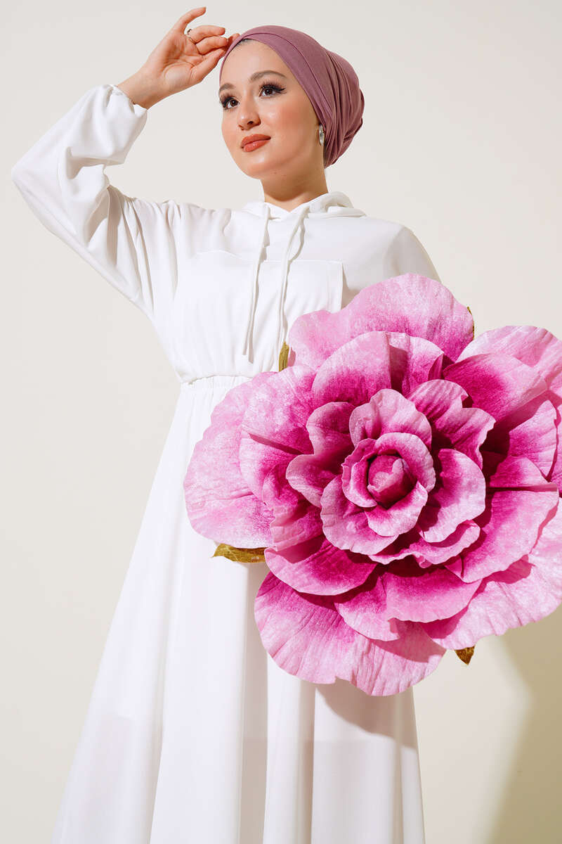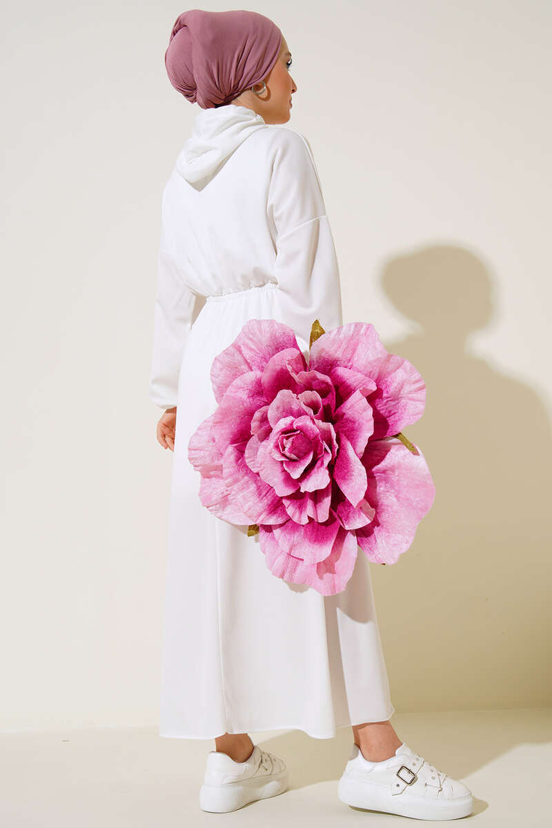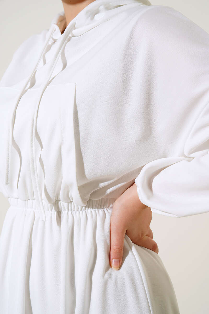 Kapşonlu Elbise Ekru