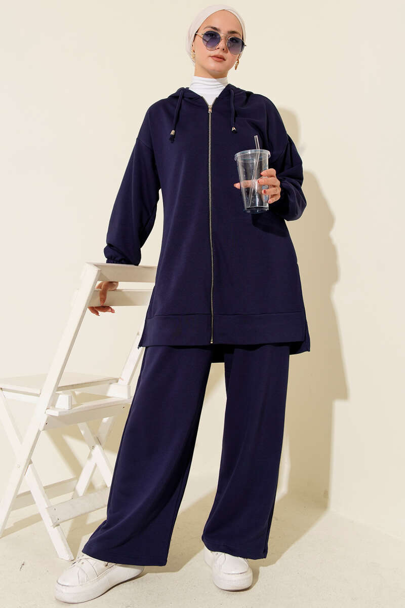 Bel Tünelli Çift Cepli İkili Takım Lacivert