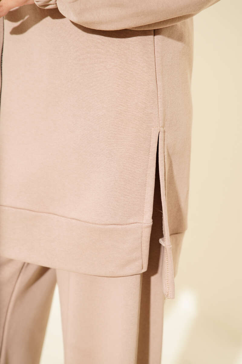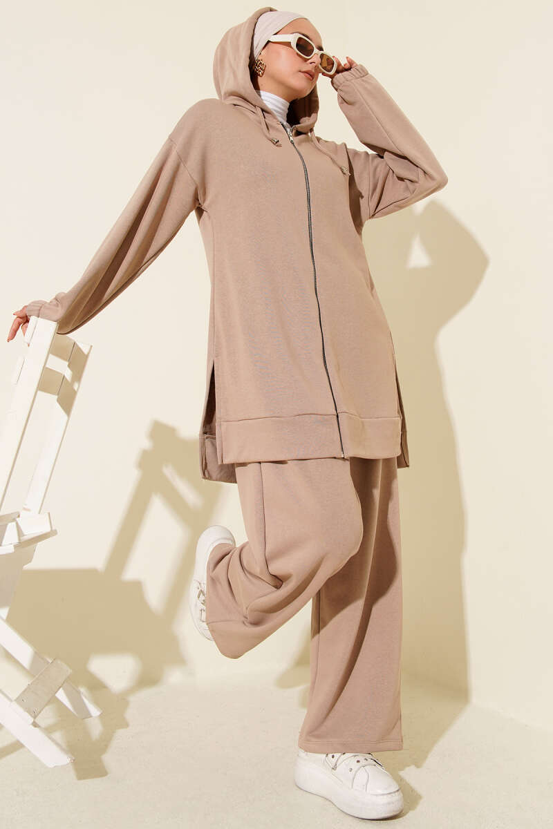 Kapşonlu Fermuar Detaylı İkili Takım Latte