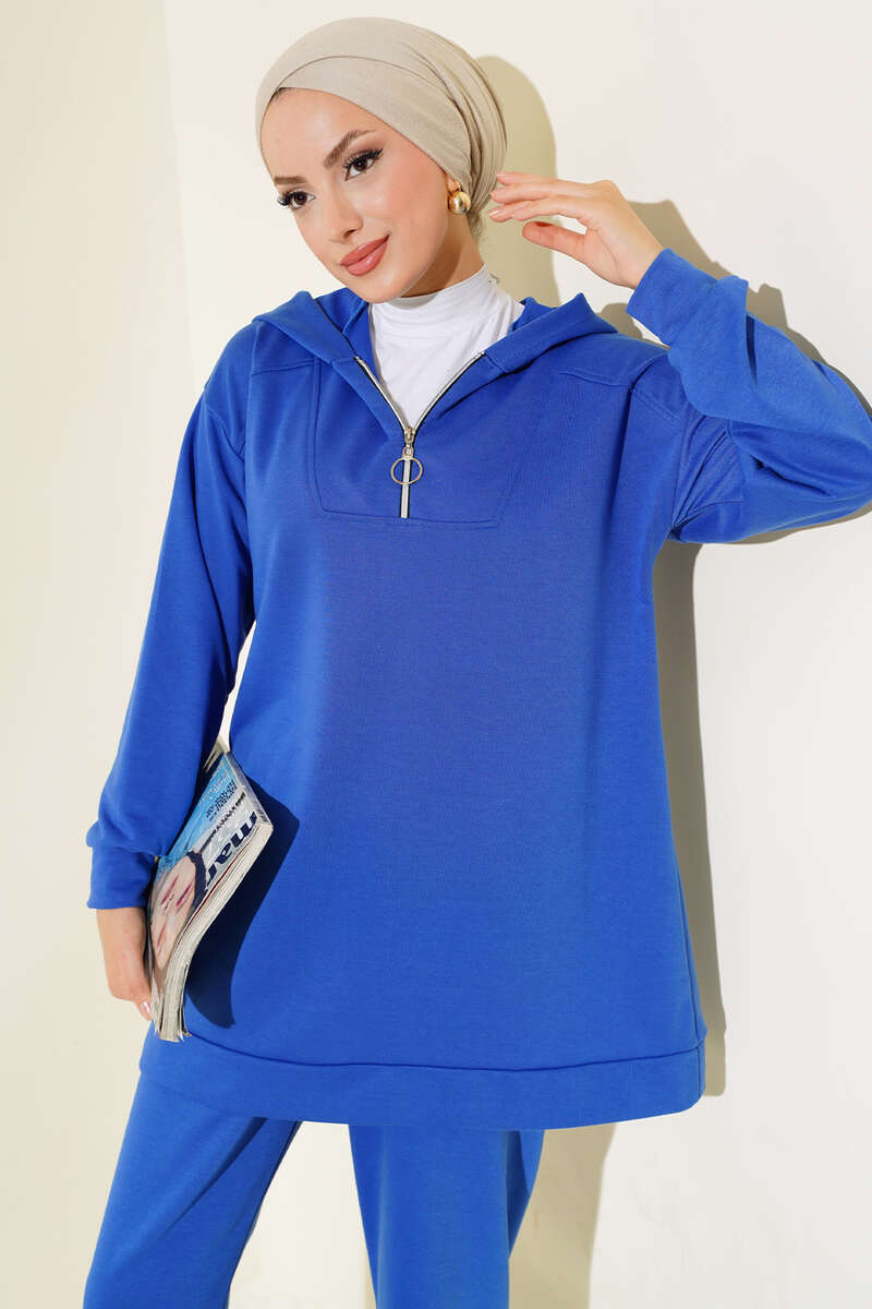 Yeni sezon ikili takım modelimiz sizlerle beraber. Tuniğimiz önden fermuarlıdır. Kapşonludur. Pantolonumuzun beli lastiklidir. boru paçadır. renk seçeneklerimiz bulunmaktadır. Hem sportif hem şıklığıyla yazın favori parçanız olacaktır.
