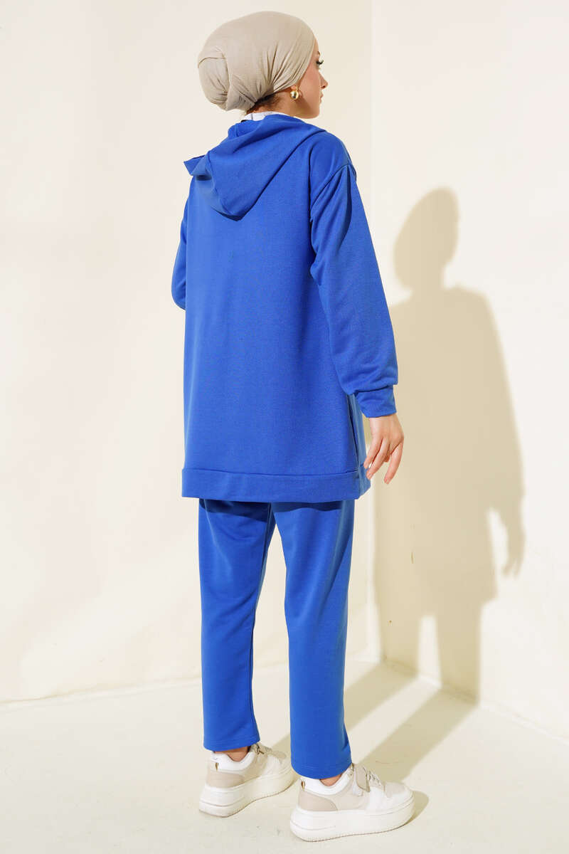 Kapşonlu Fermuarlı İkili Takım Saks