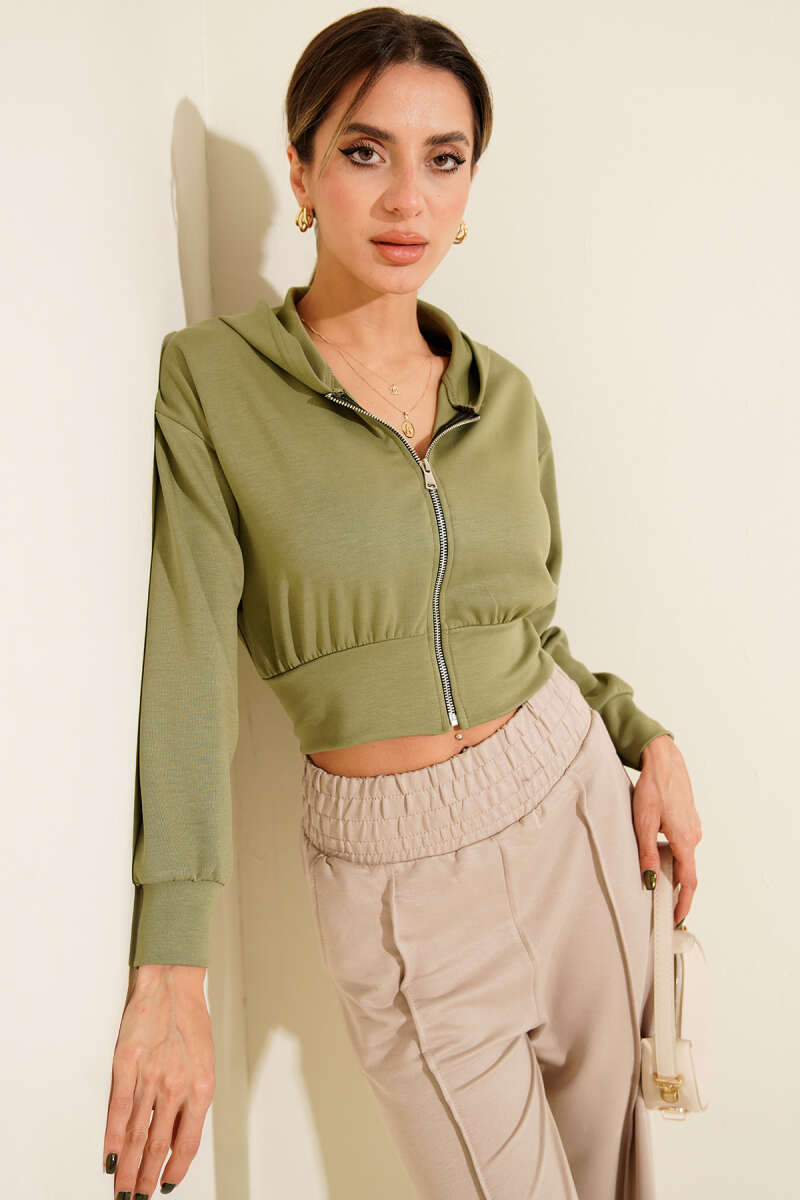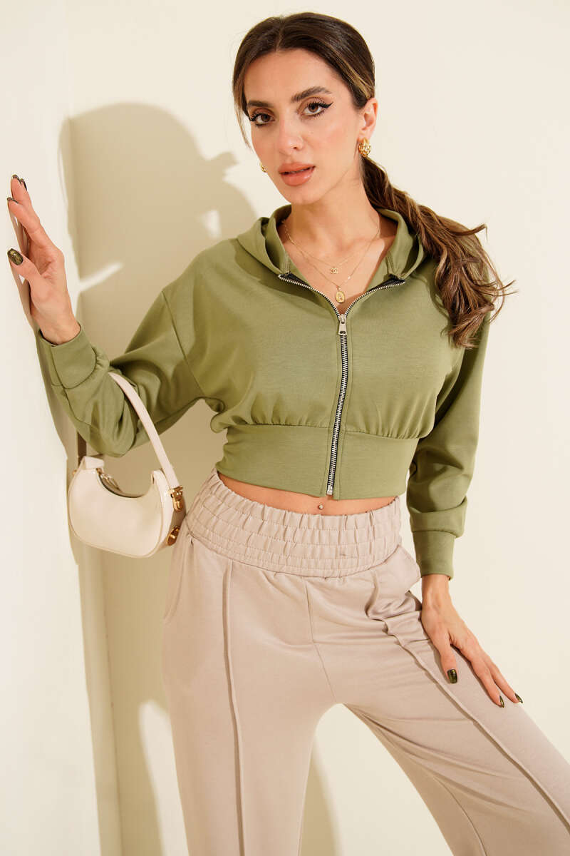 Midye Dikişli Triko Elbise Yağ Yeşili