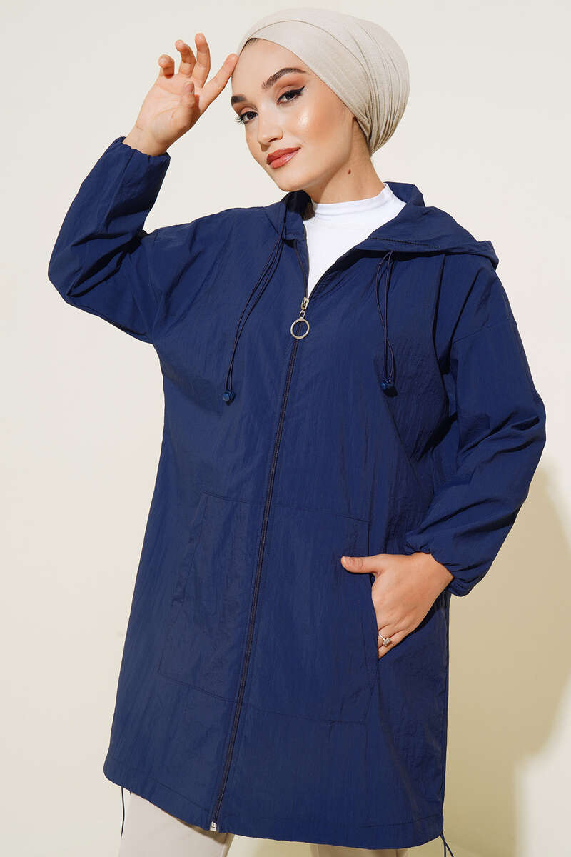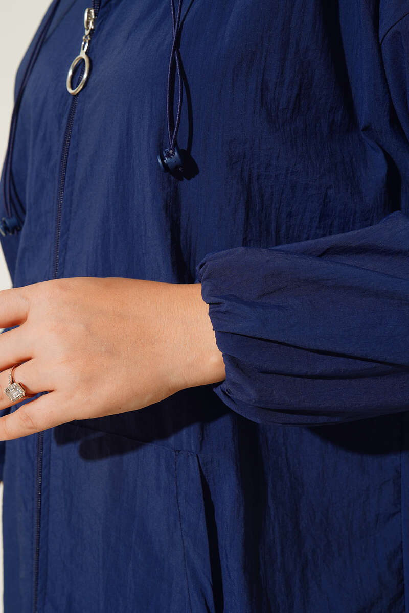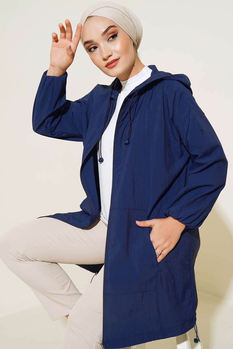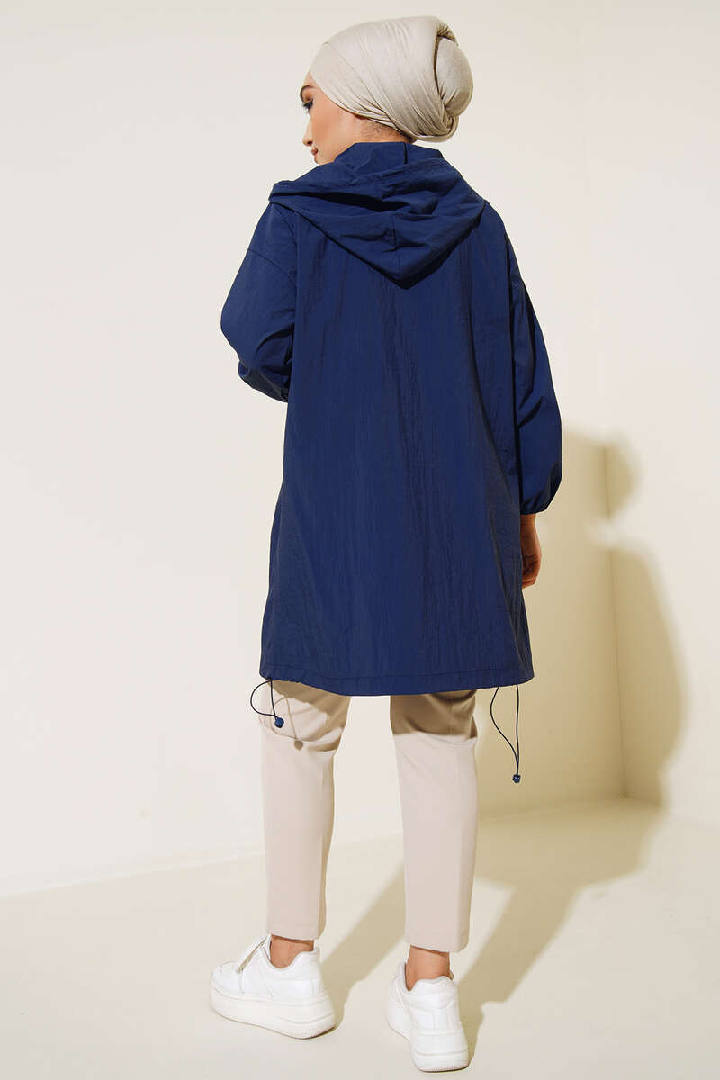 Kapşonlu Paraşüt Kap Lacivert