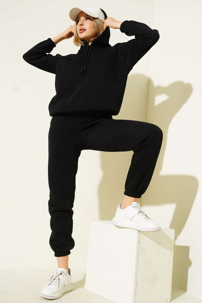 Çımalı Dar Paça Scuba Pantolon Siyah