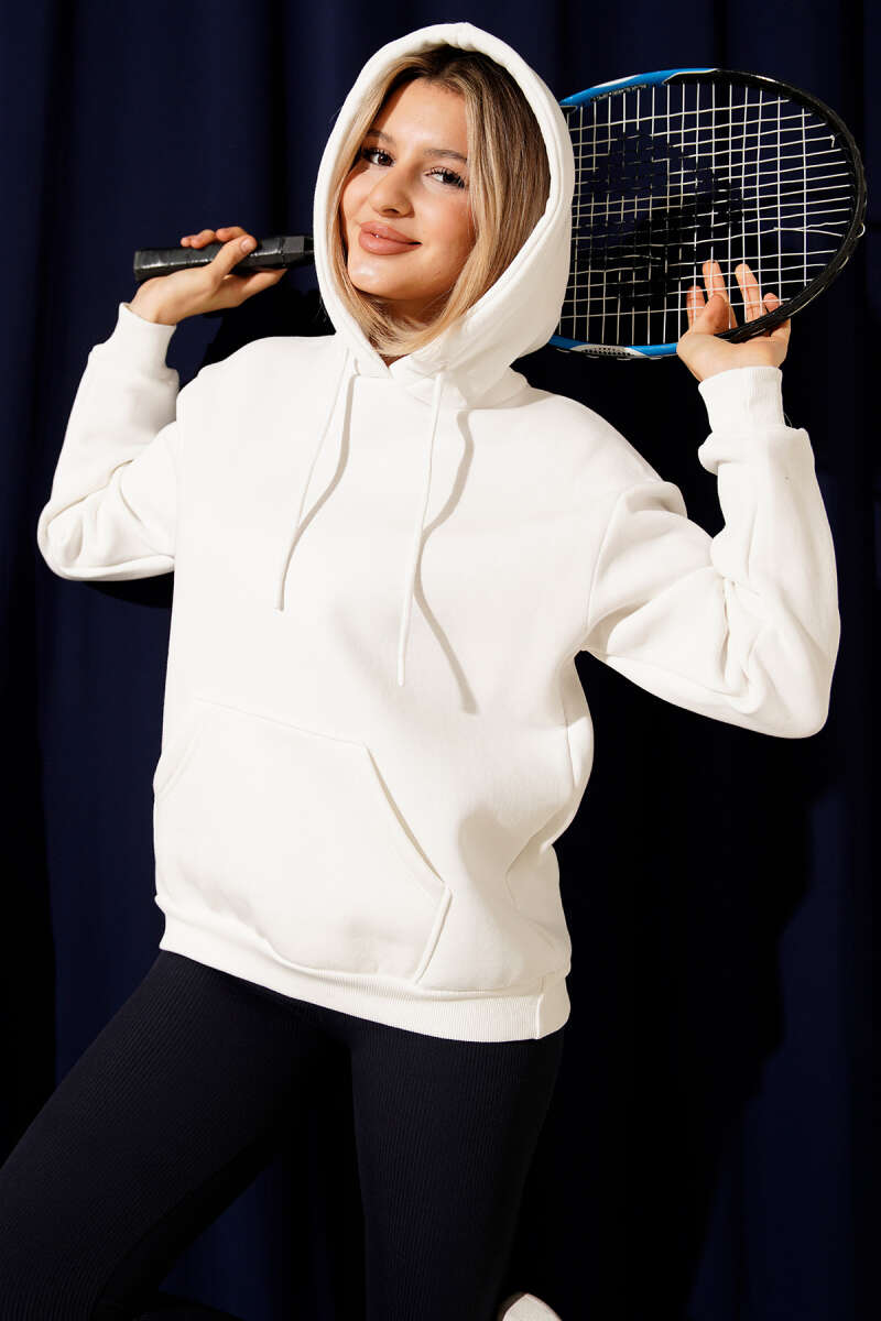 Basic Üç İplik Kısa Sweatshirt Ekru