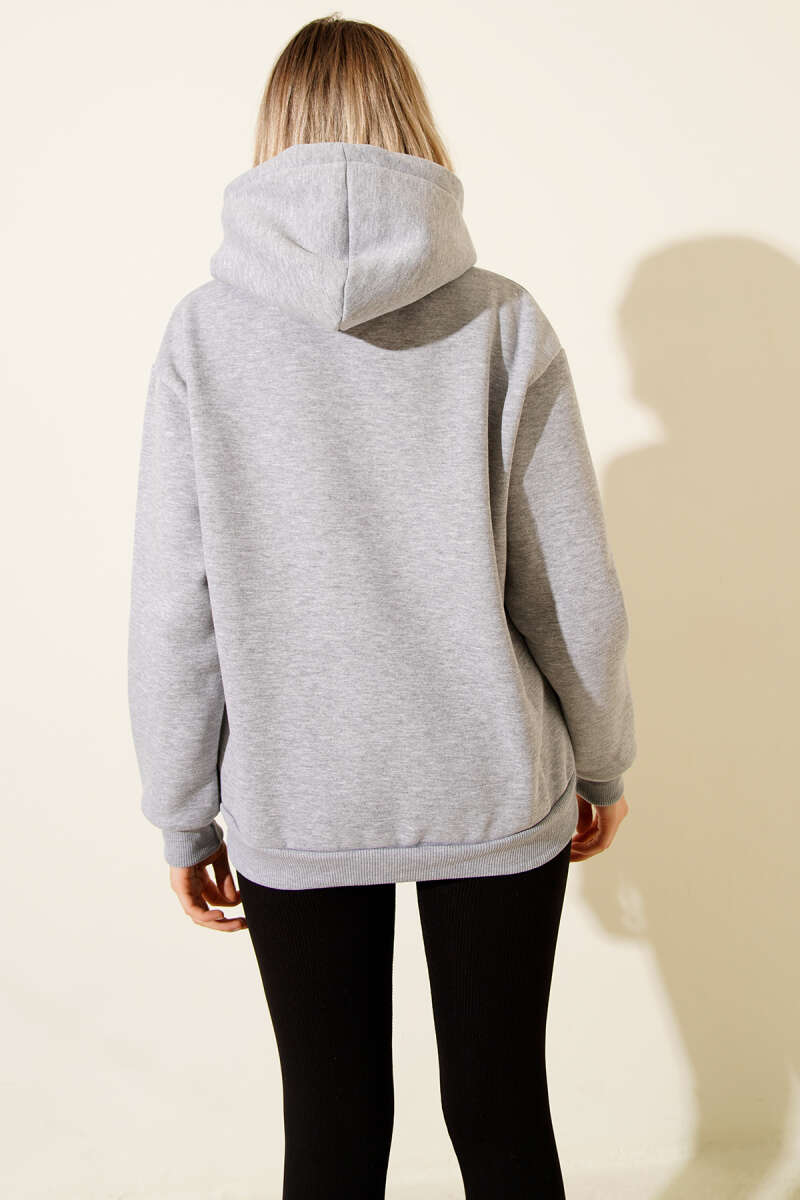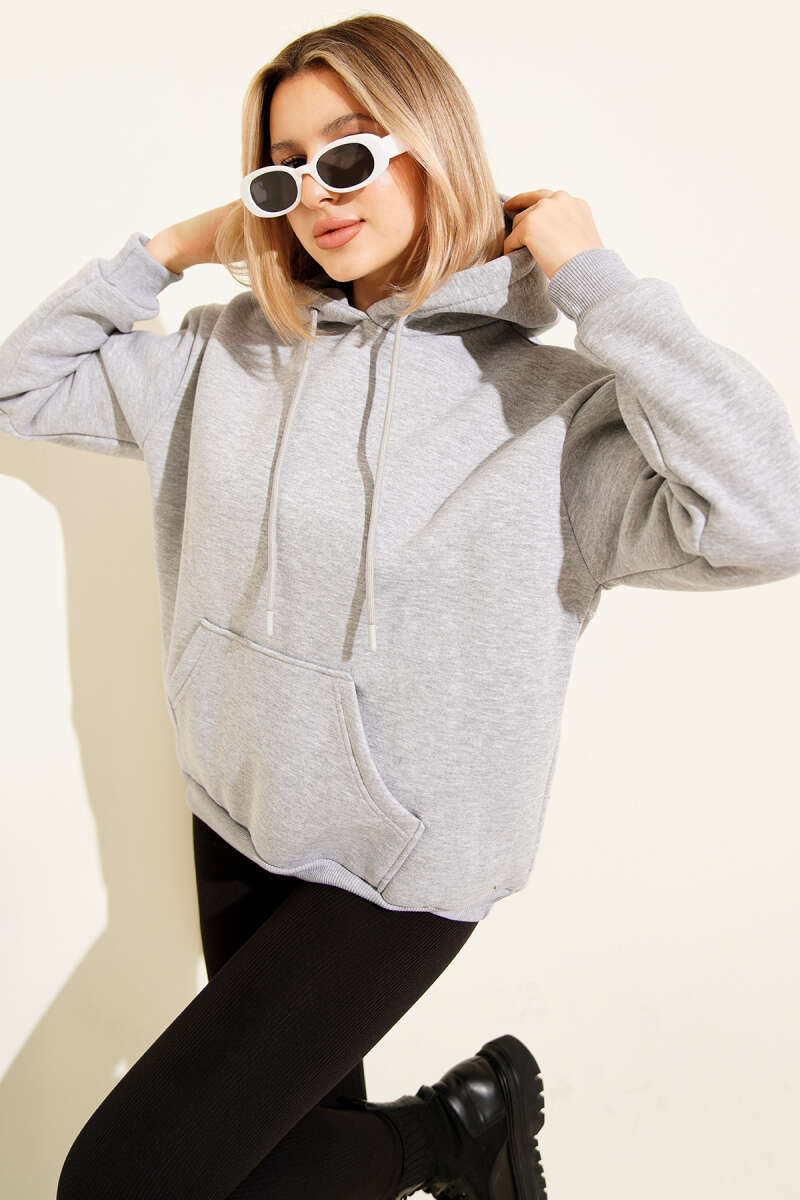Kapüşonlu Basic Üç İplik Sweatshirt Ekru