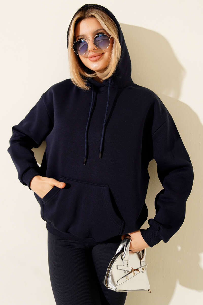 Kol Şeritli Fiyonklu Üç İplik Sweatshirt Lacivert