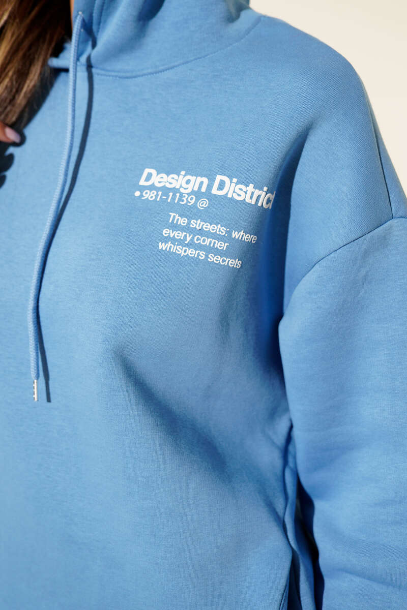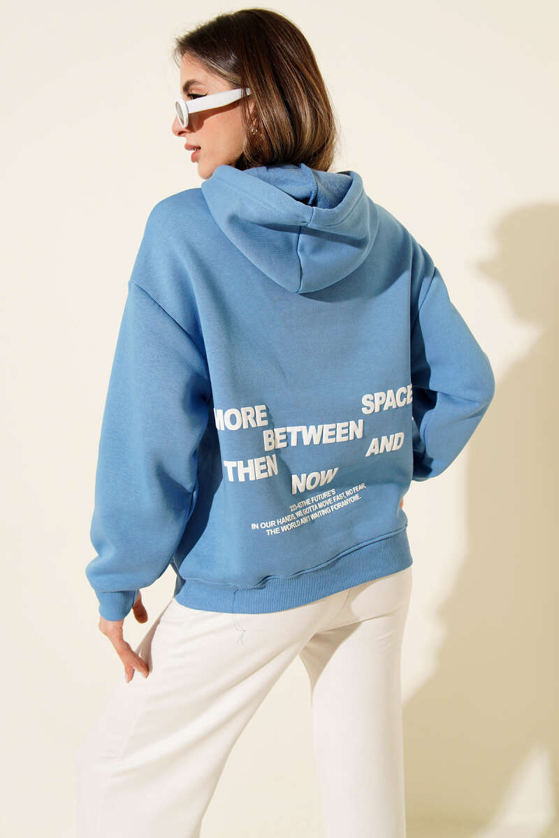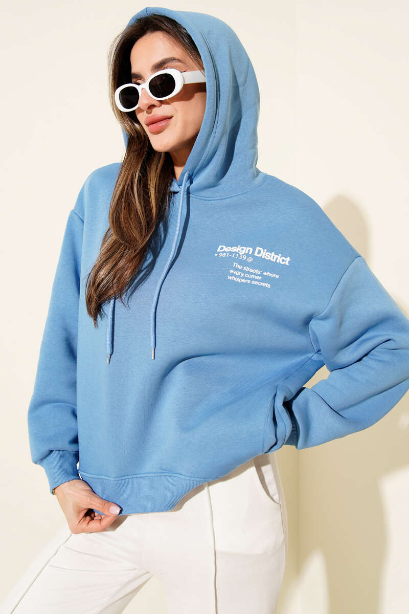 Kapüşonlu Baskılı Üç İplik Sweatshirt Lacivert