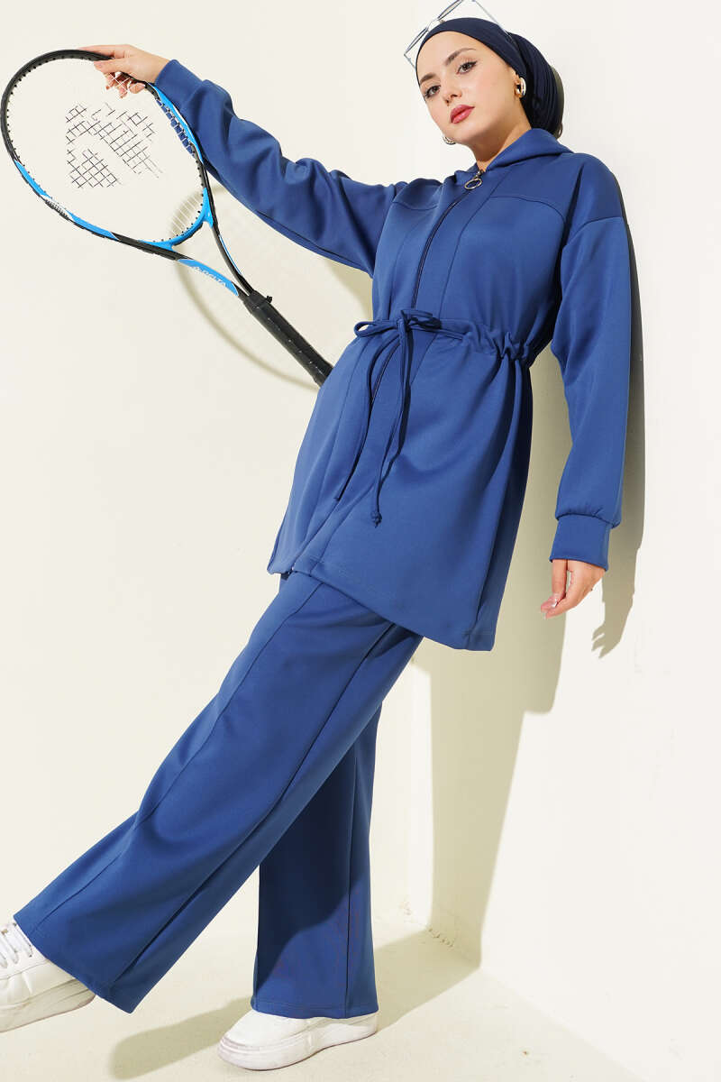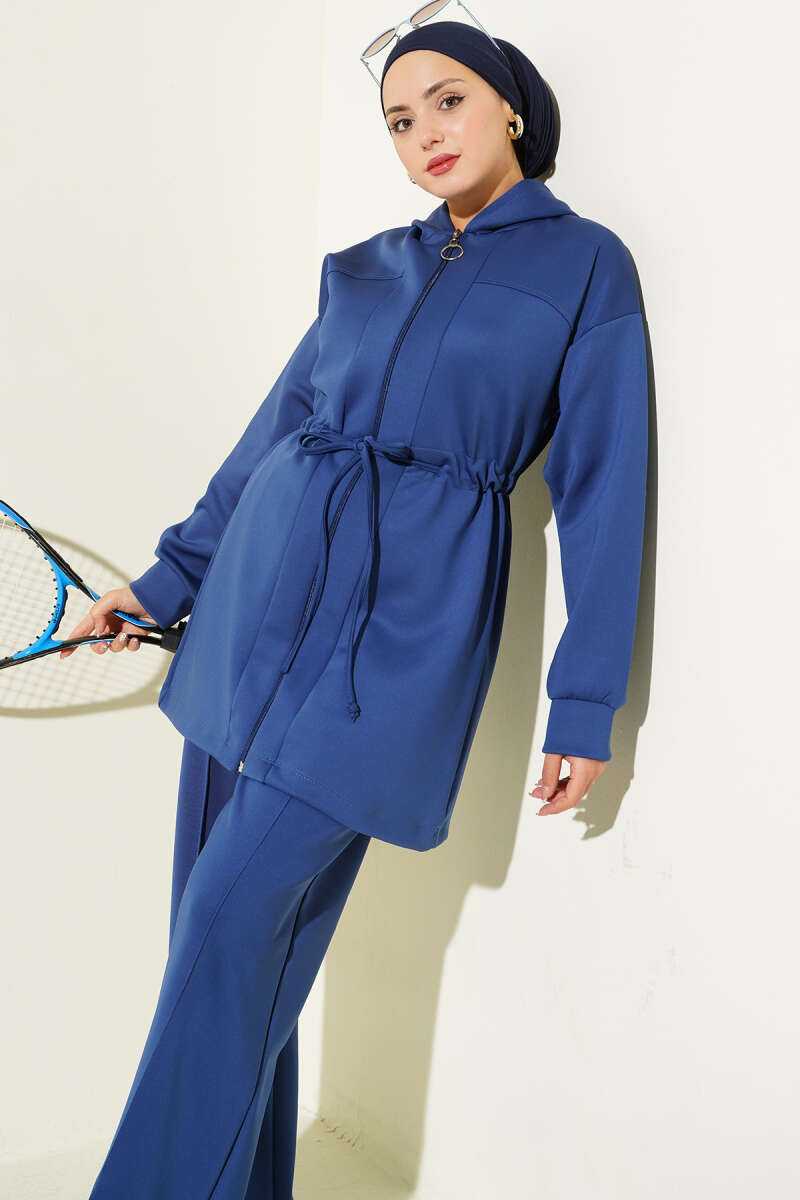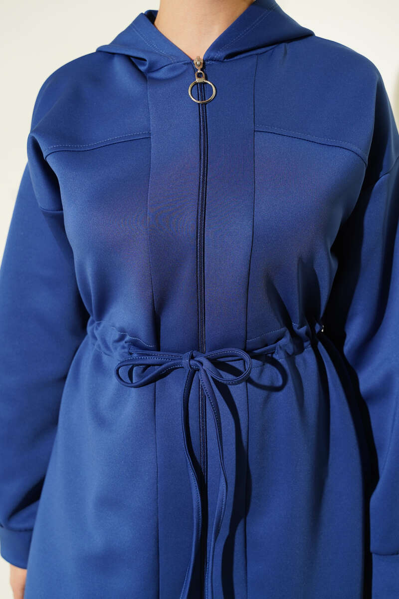 Fermuar Cepli Kapüşonlu Kap Lacivert