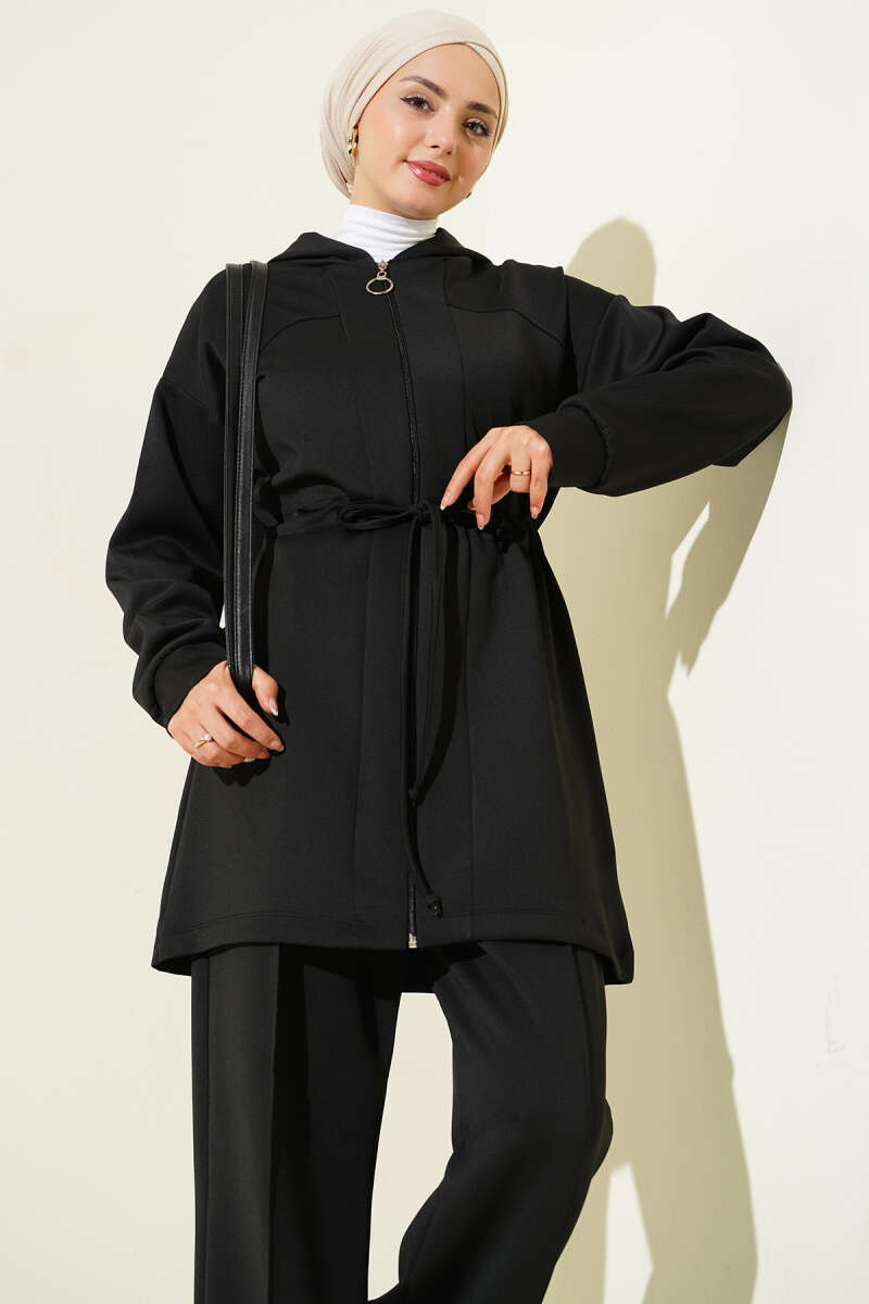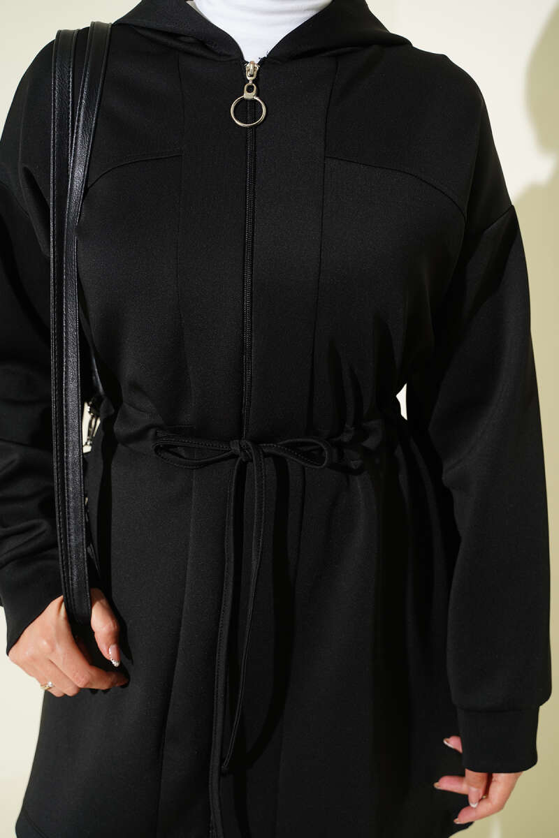 Düğmeli Kuşaklı Araboy Trençkot Siyah