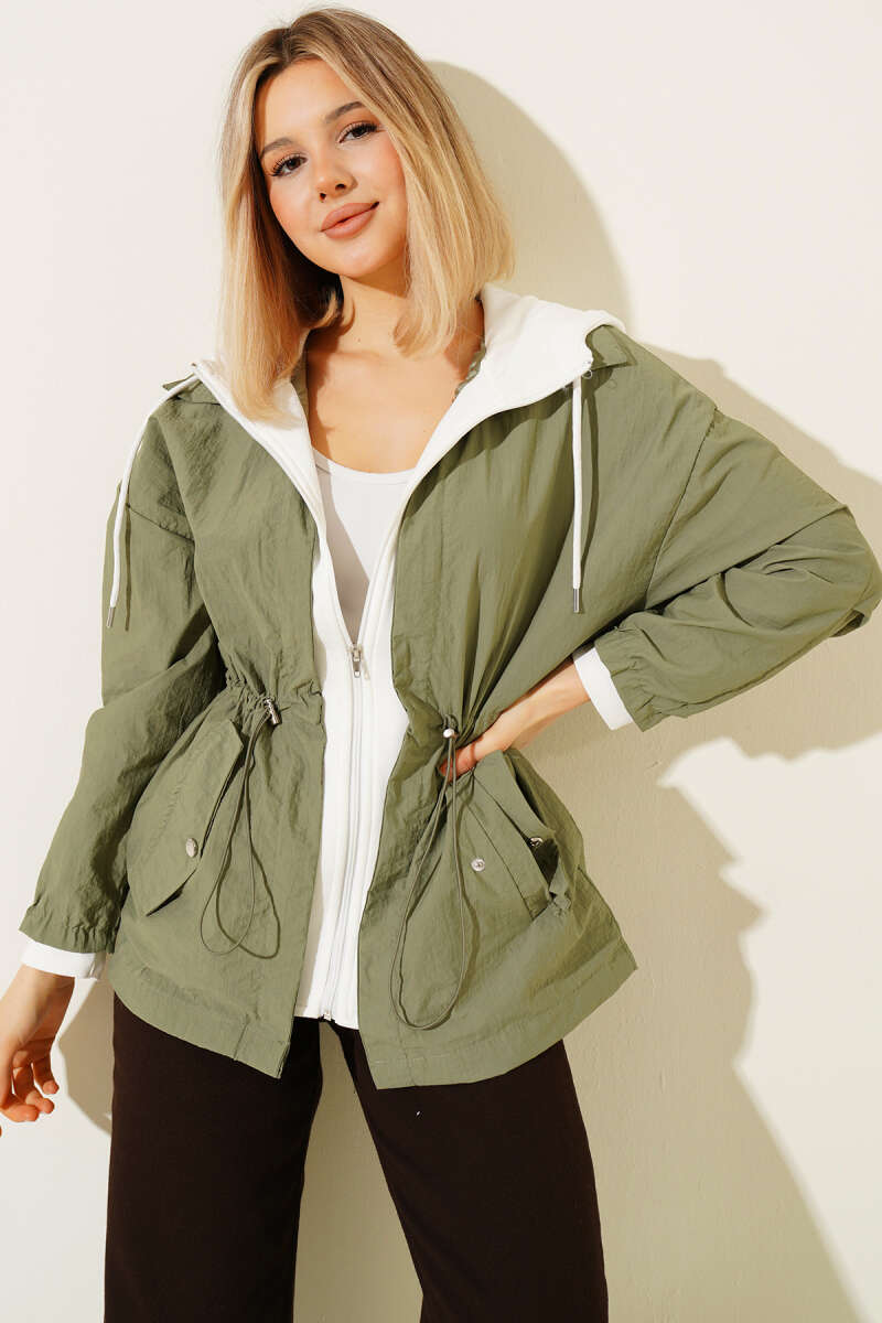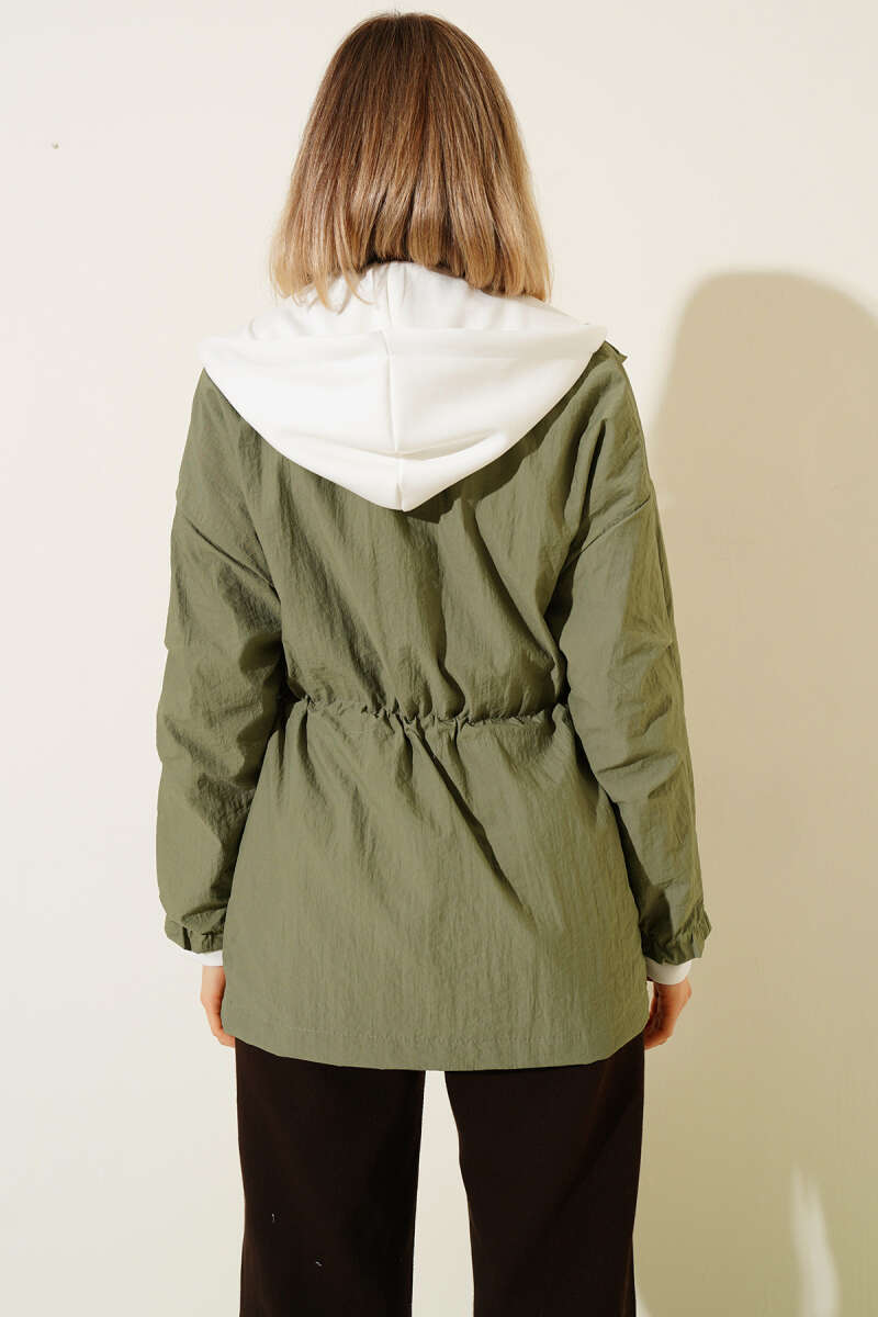 Kapüşonlu Bel Tünelli Paraşüt Ceket Haki