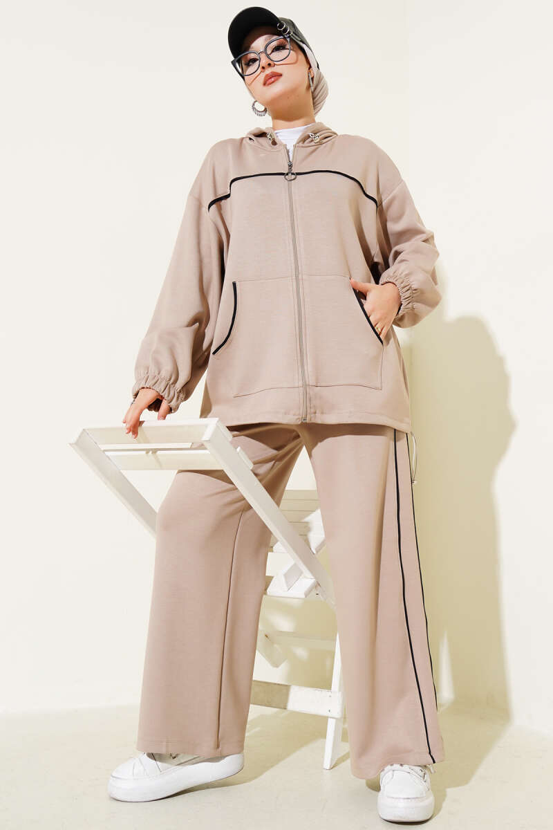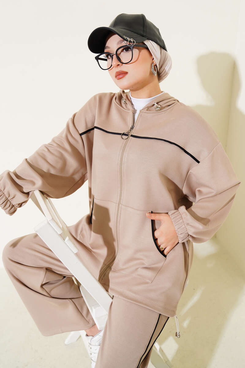 Önü Fermuarlı Kapşonlu İkili Takım Siyah