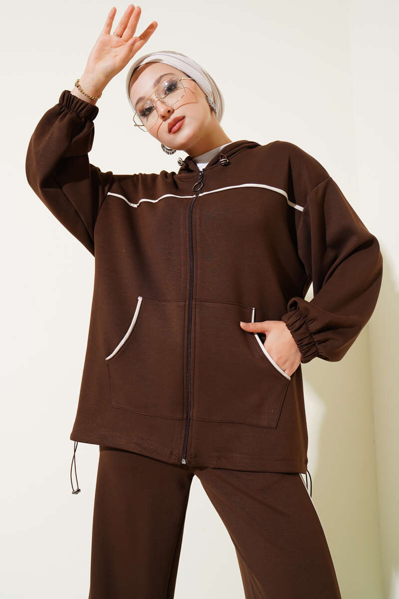 Classy Armalı Fermuarlı İkili Takım Mürdüm