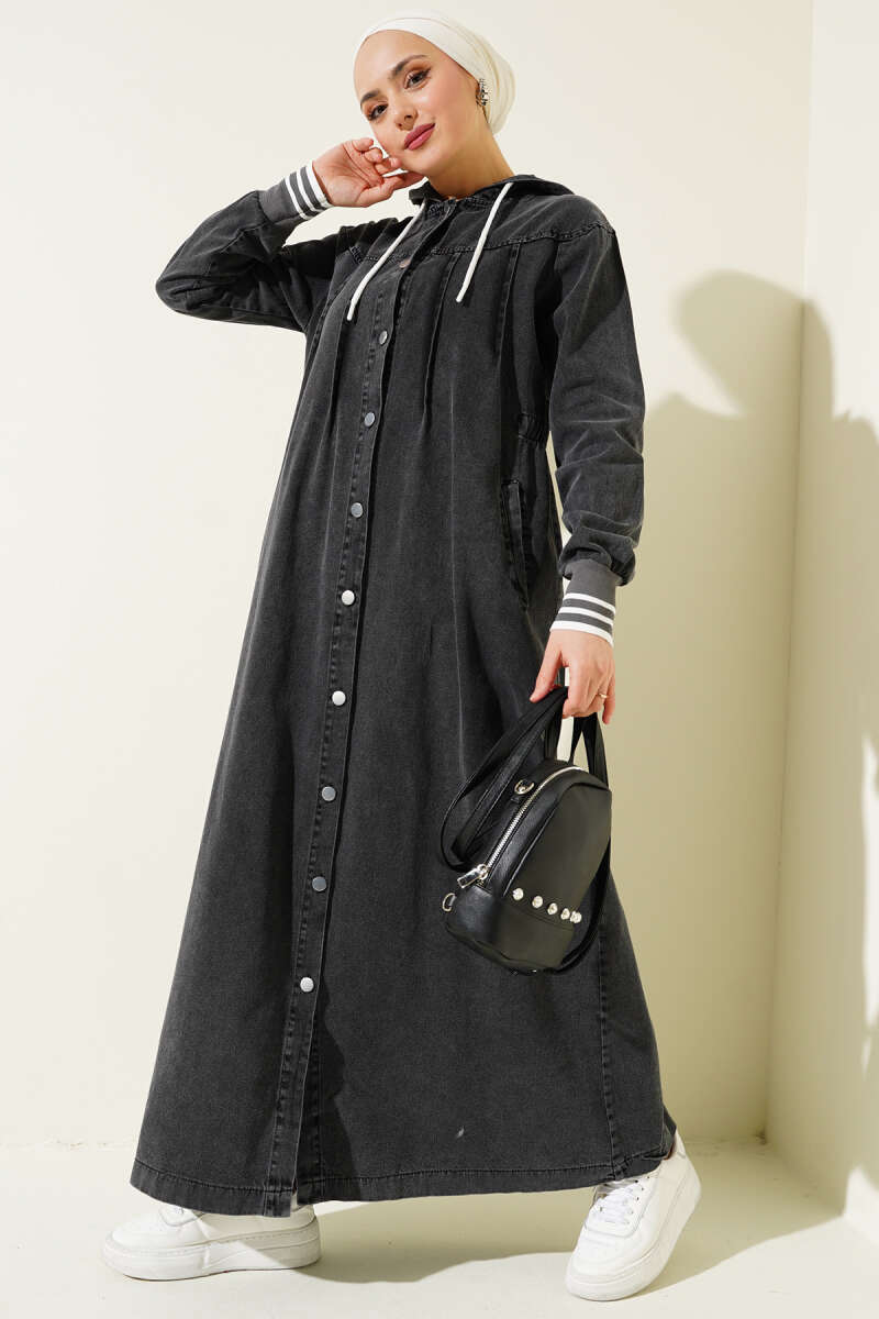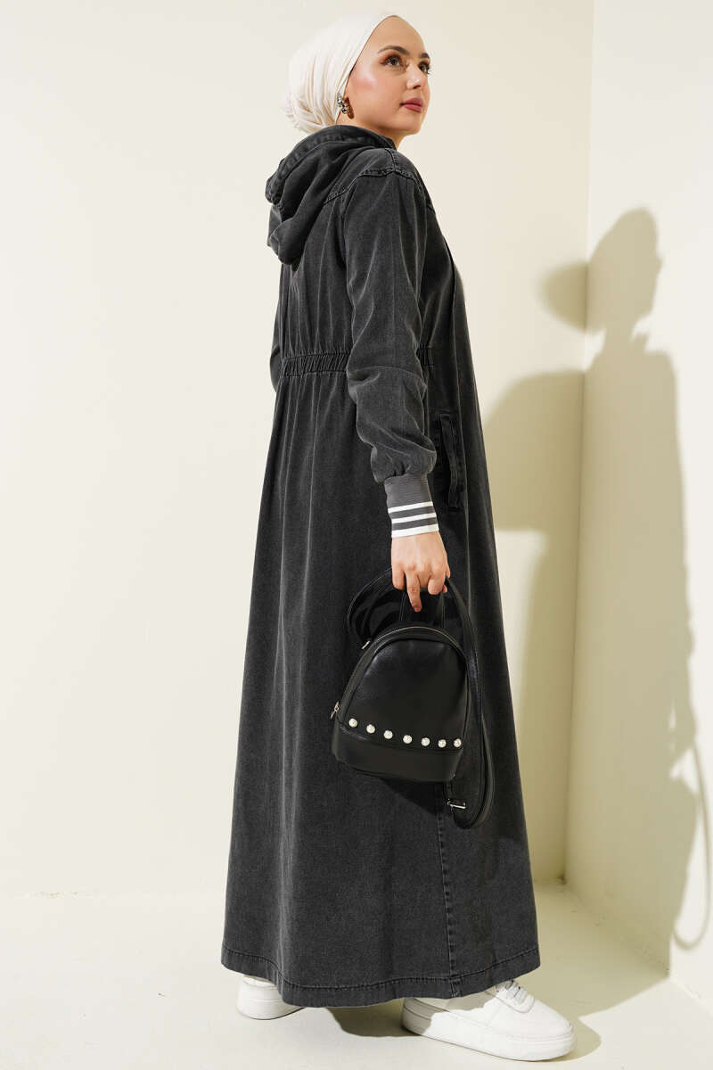 Serpme Taş Detaylı Sakallı Tunik Siyah