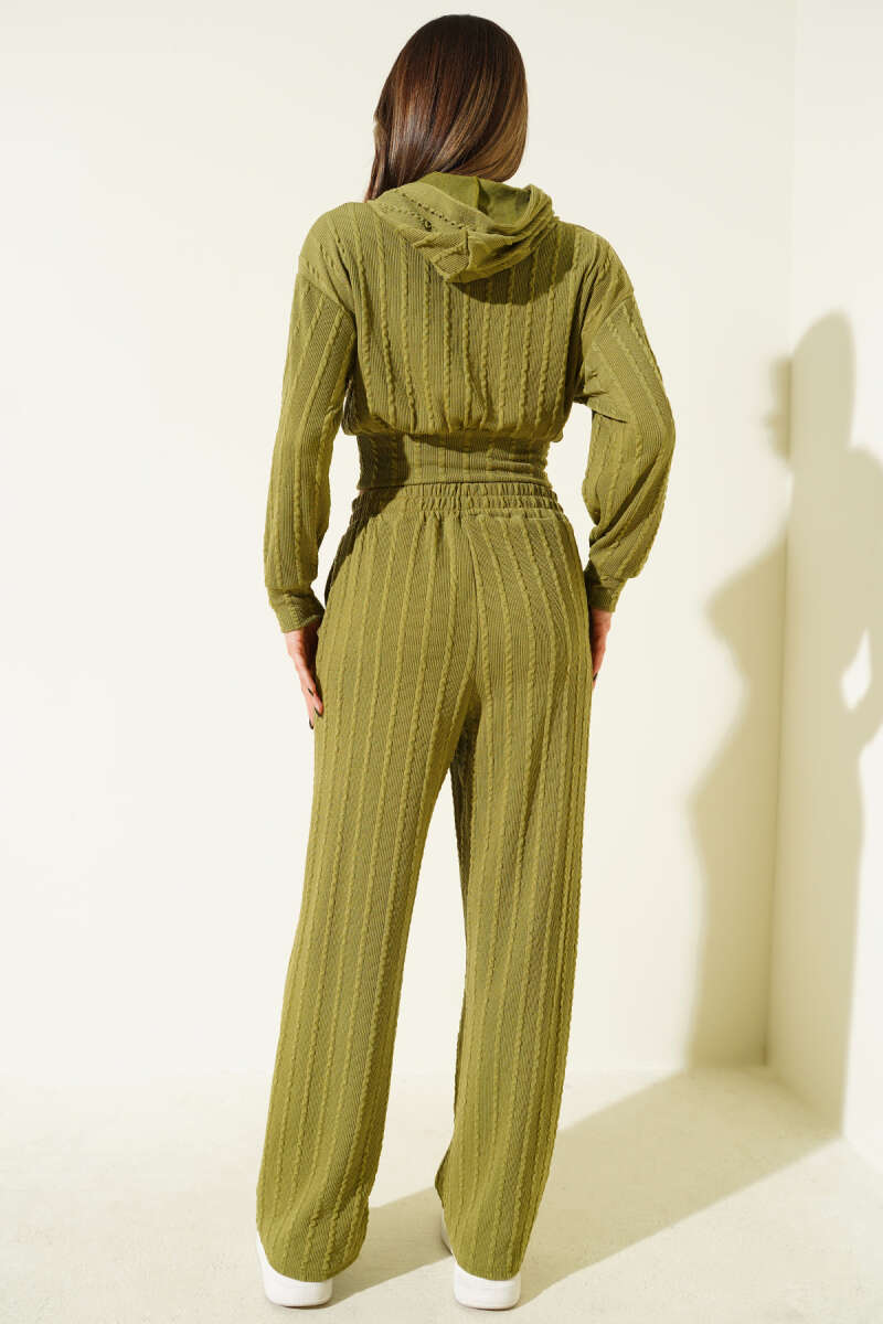 İnce Çizgili Triko Jileli İkili Takım Gri