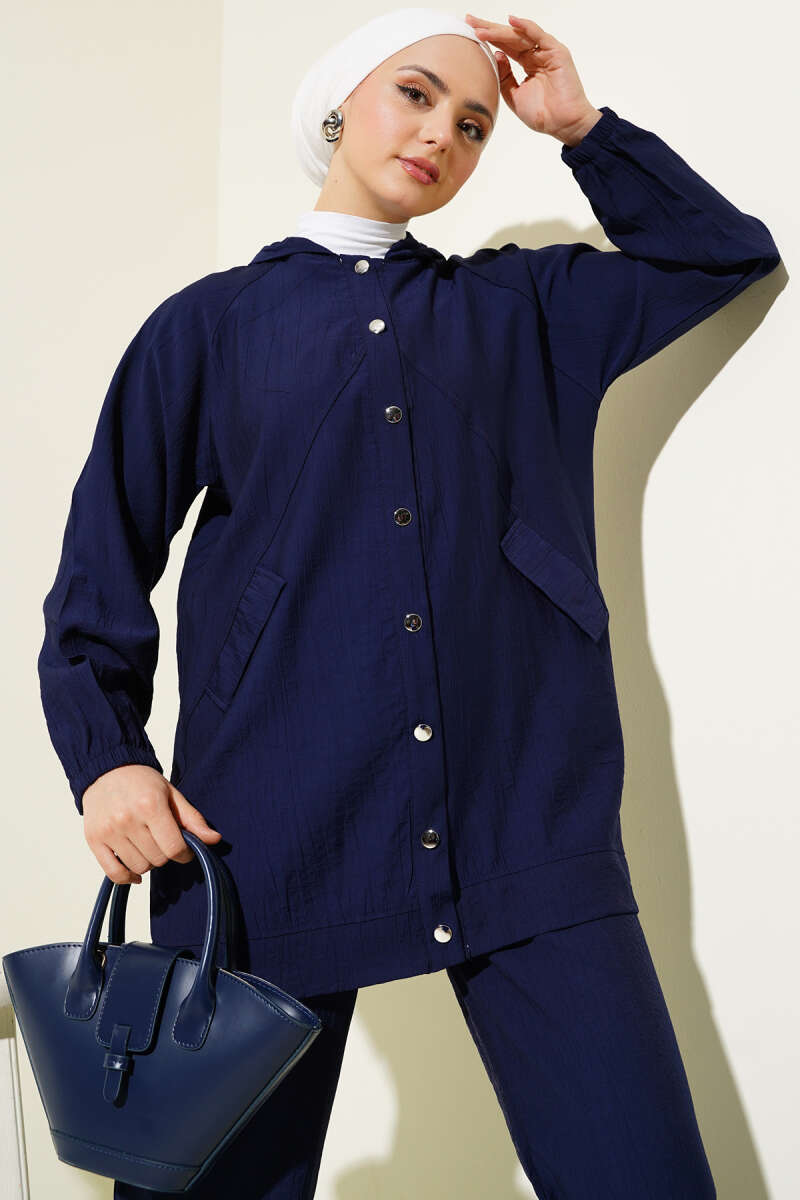 Kapüşonlu Cep Kapaklı İkili Takım Lacivert