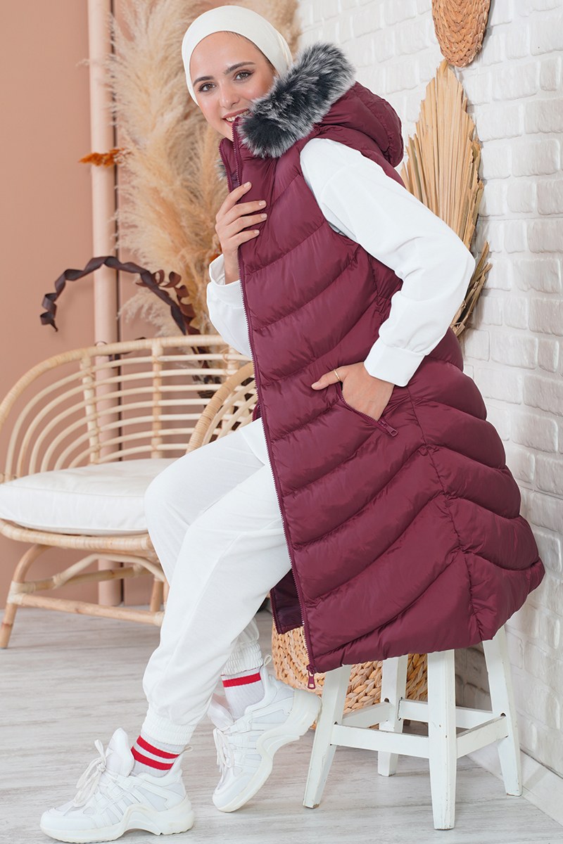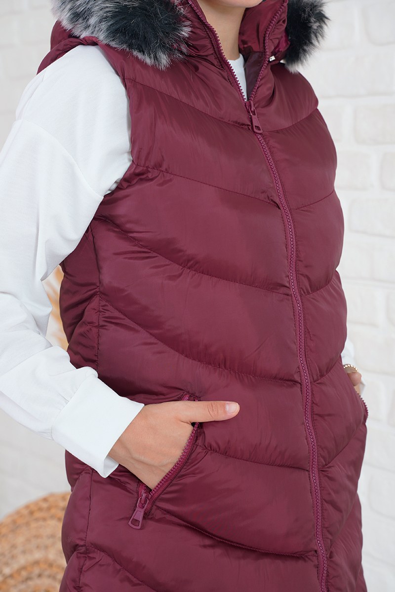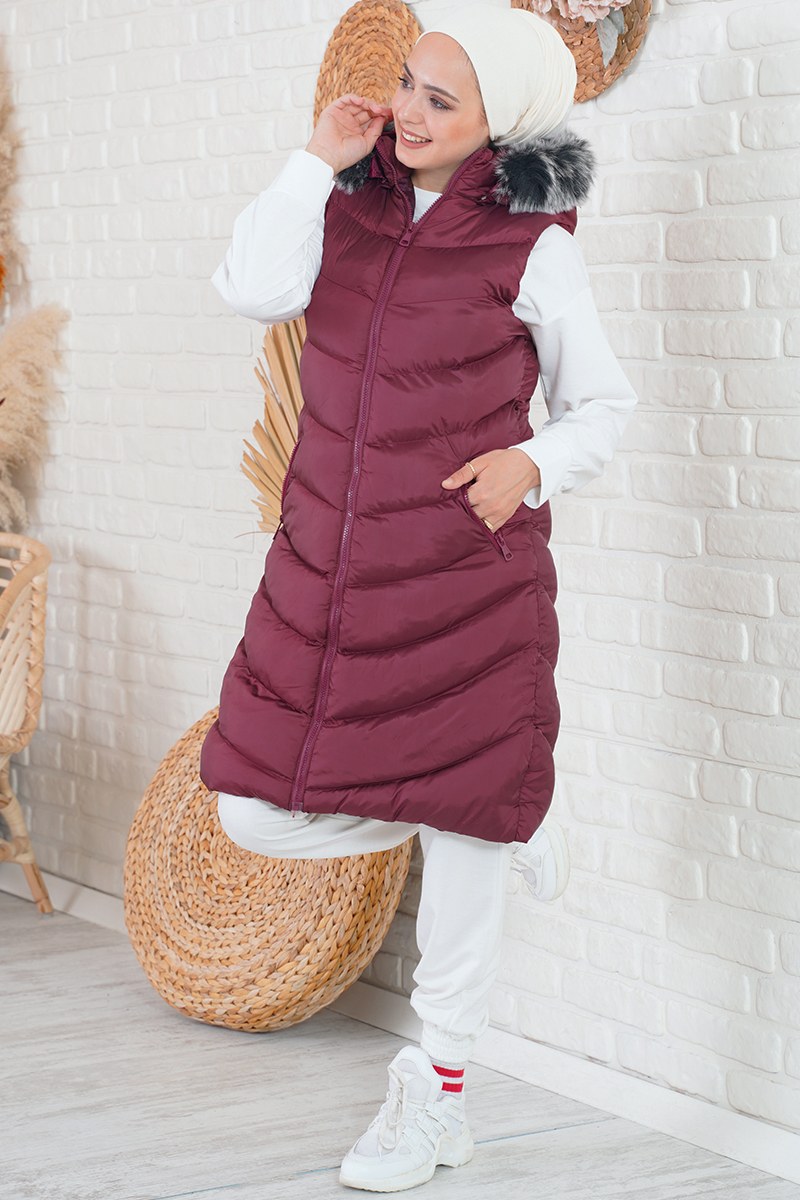 Şişme yelek yeni sezon modeldir. Kapüşonludur. Bordo renkli şişme yelek boydan fermuarlıdır. Çift ceplidir. Kolsun modelin kapüşonu çıkabilmektedir. İçi astarlıdır. Su geçirmez. Renk seçeneği mevcuttur.