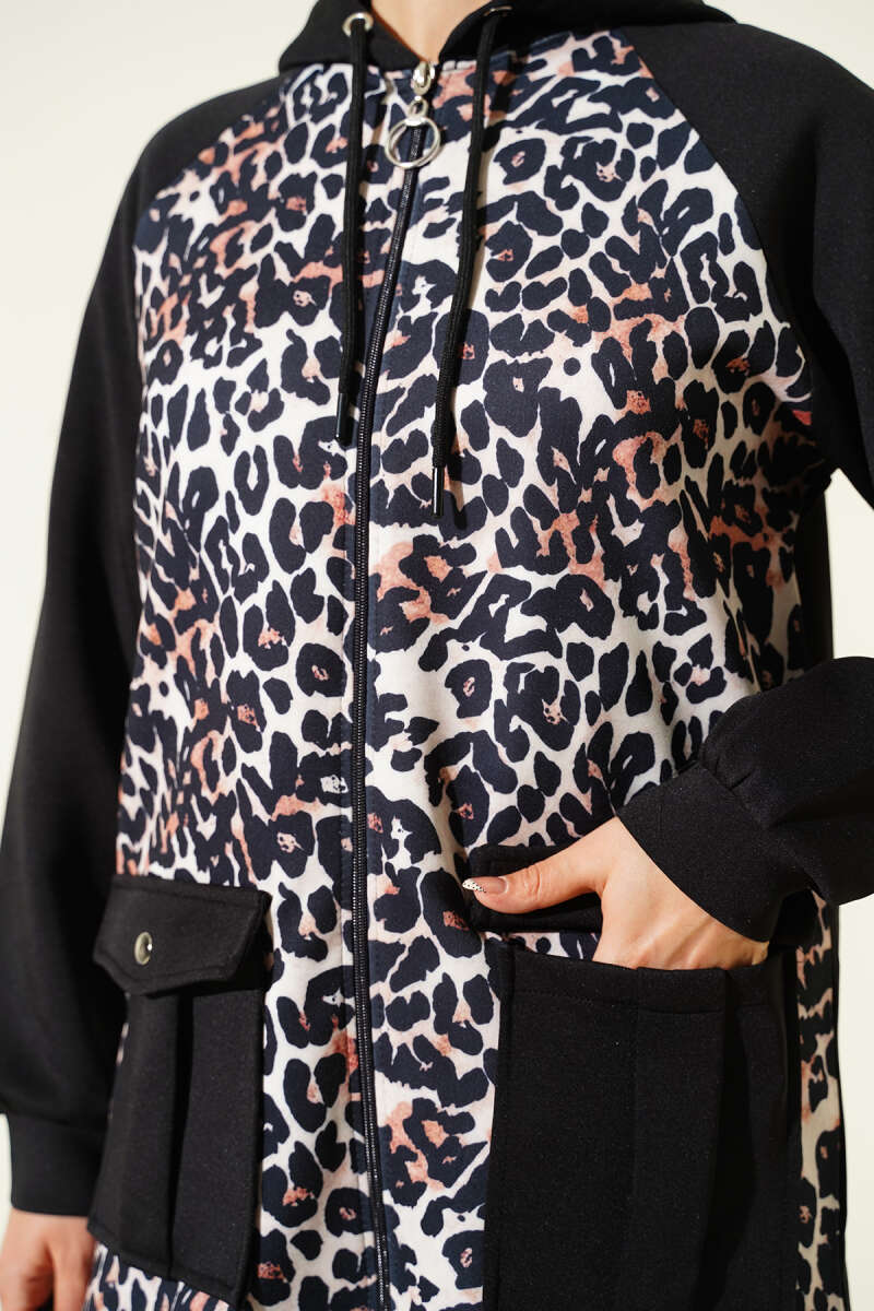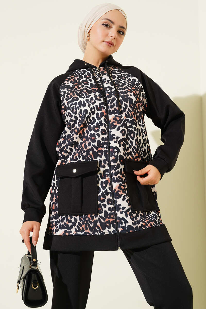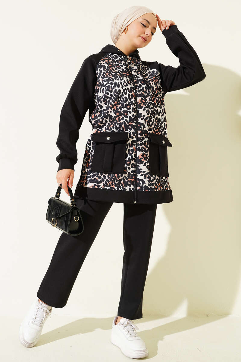 Çift Cepli Leopar Garnili İkili Takım Siyah