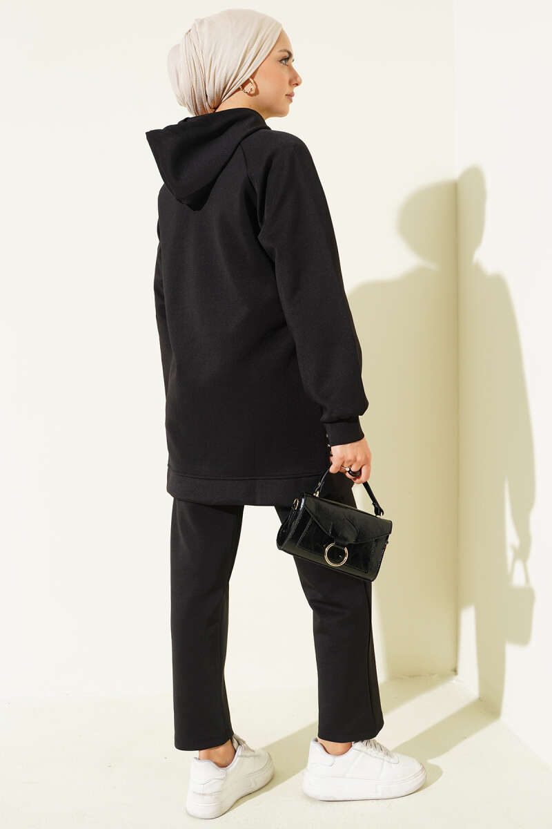 Beli Tünelli Fermuarlı Scuba İkili Takım Siyah