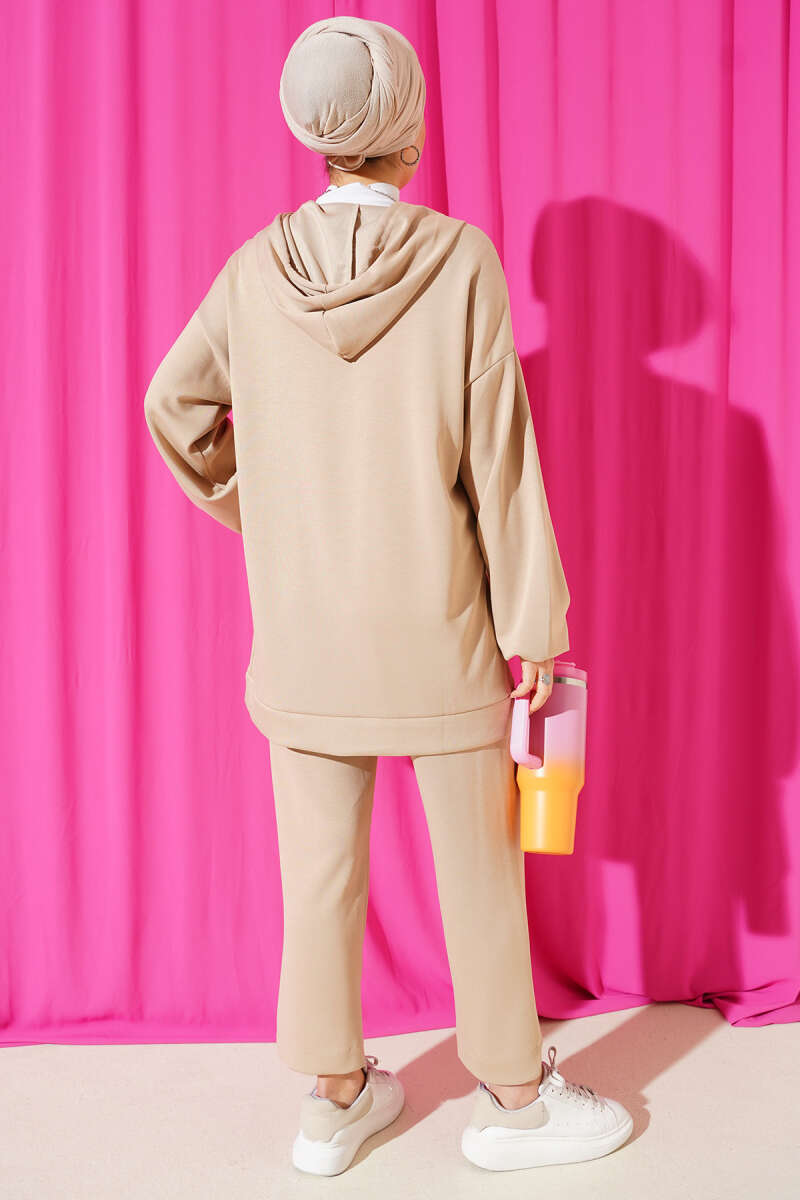 Kapüşonlu Cepli Loyşa İkili Takım Ekru