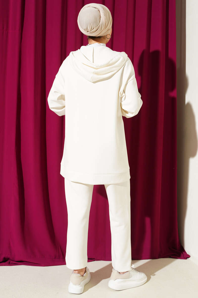 Kapüşonlu Cepli Loyşa İkili Takım Bej