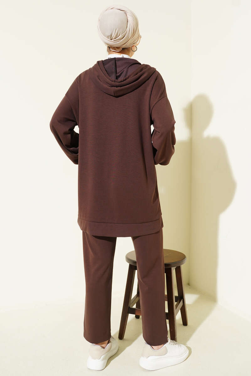 Kapüşonlu Fermuarlı Triko İkili Takım Kahve