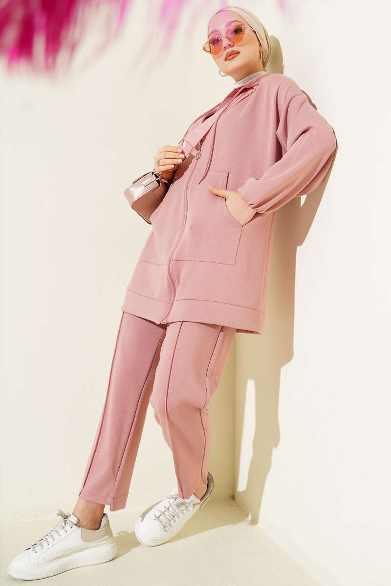 Fiyonk Detaylı Kaşe İkili Takım Pembe
